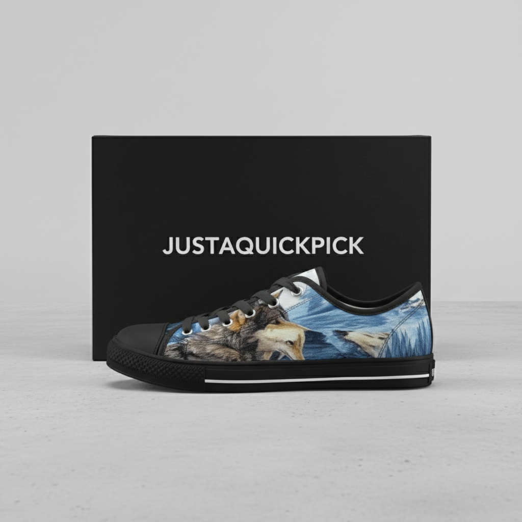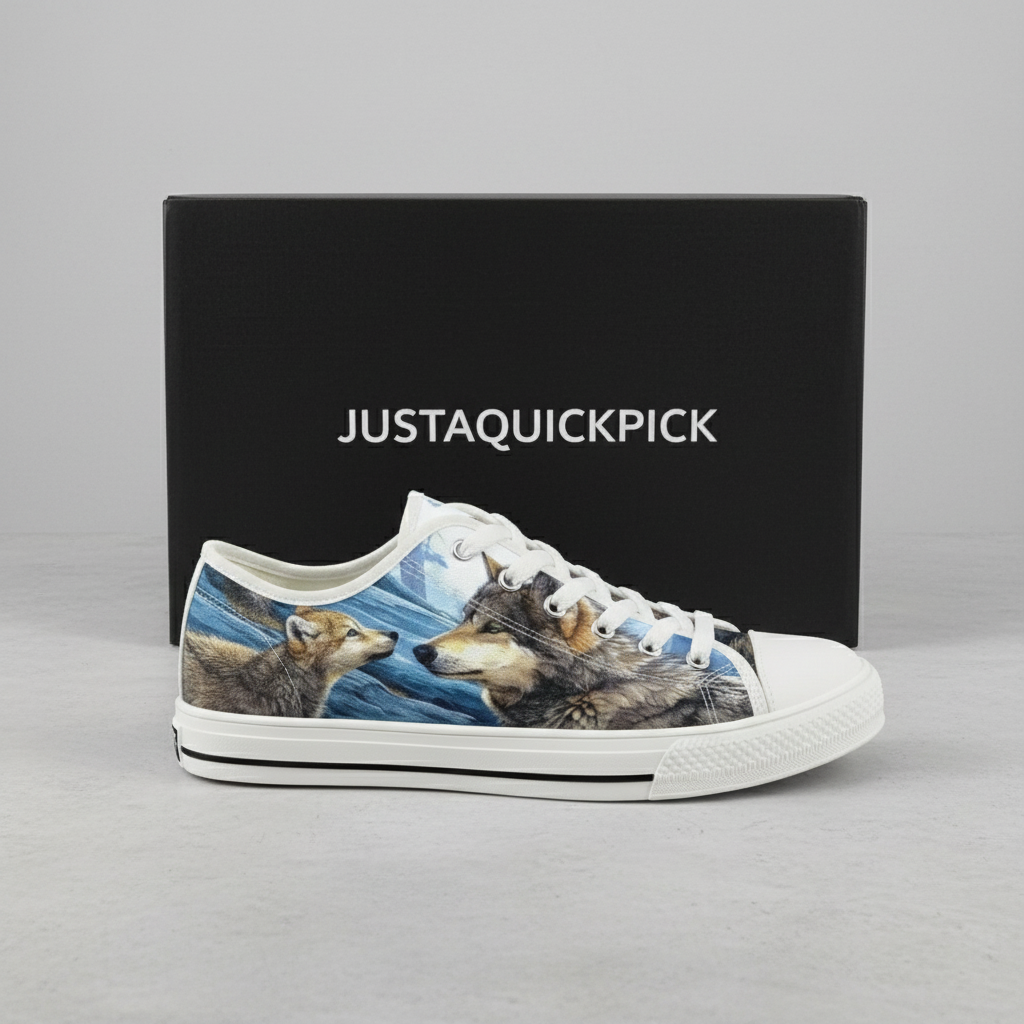 Wolf Pattern Low Top Canvas Sneakers for Men and Women – High Quality Casual Lace-Up Walking Shoes