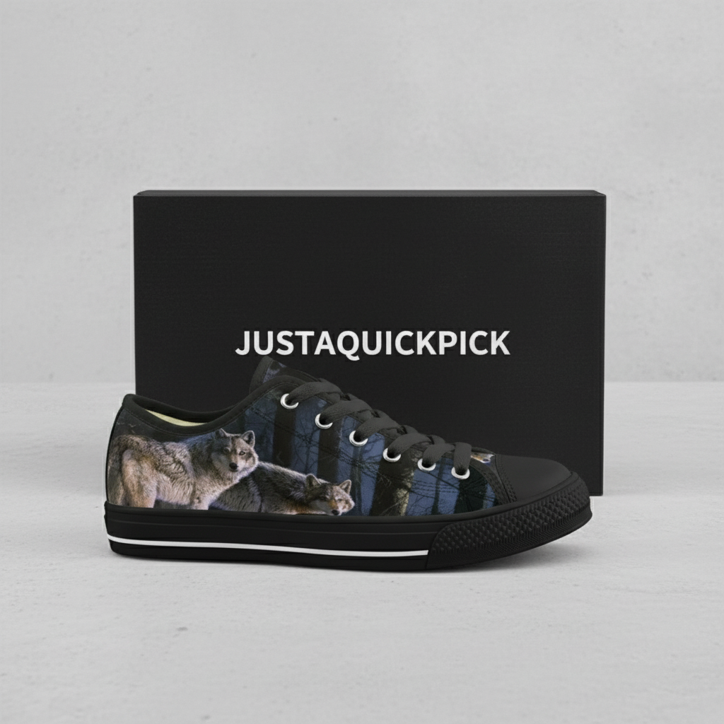 Wolf Print Low Top Canvas Sneakers for Men, Women, and Teens – Casual Animal Pattern Fashion Walking Shoes