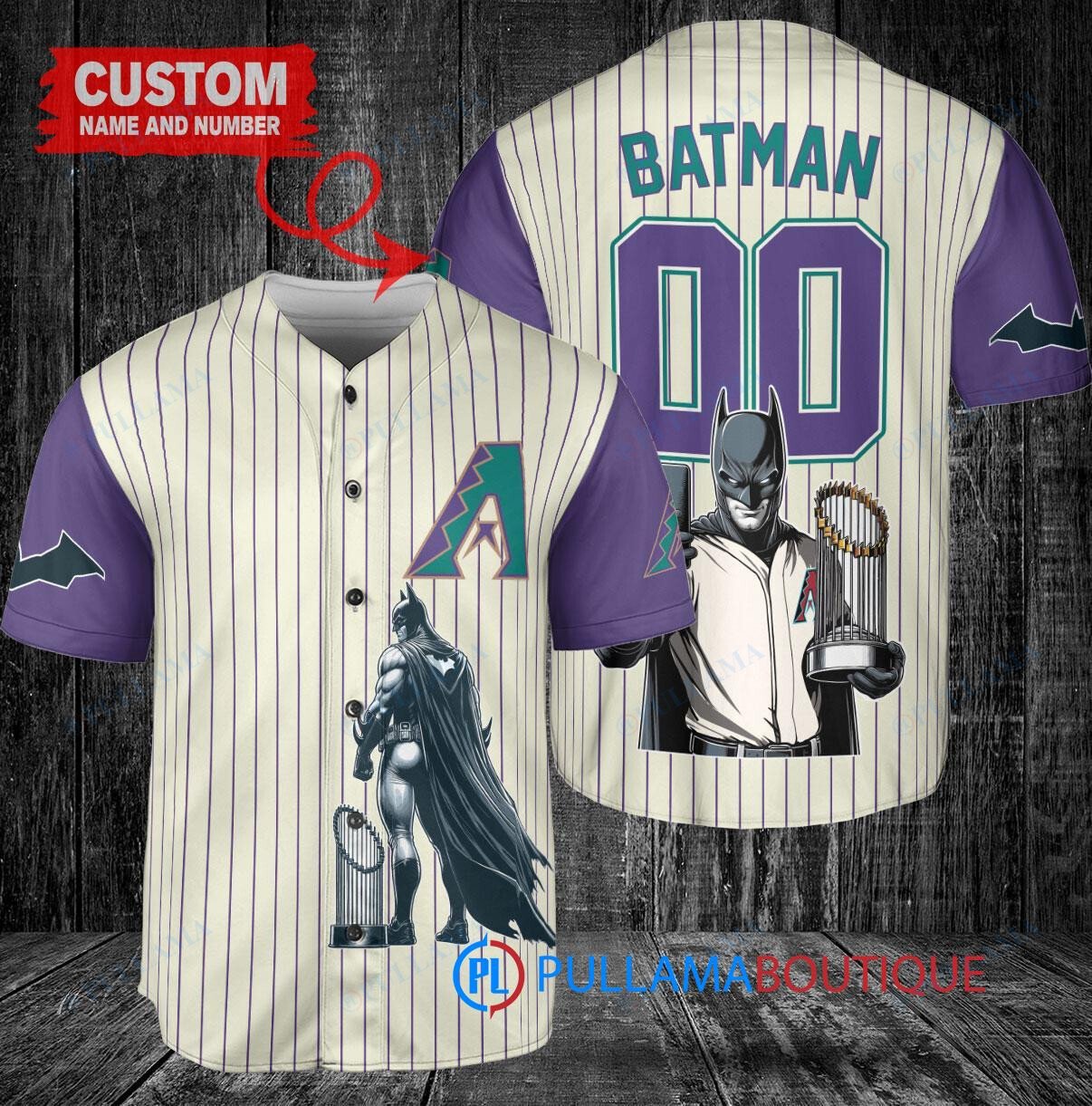 Arizona Diamondbacks x DC Comics Batman The Dark Knight with Trophy Custom Baseball Jersey Cream-Purple