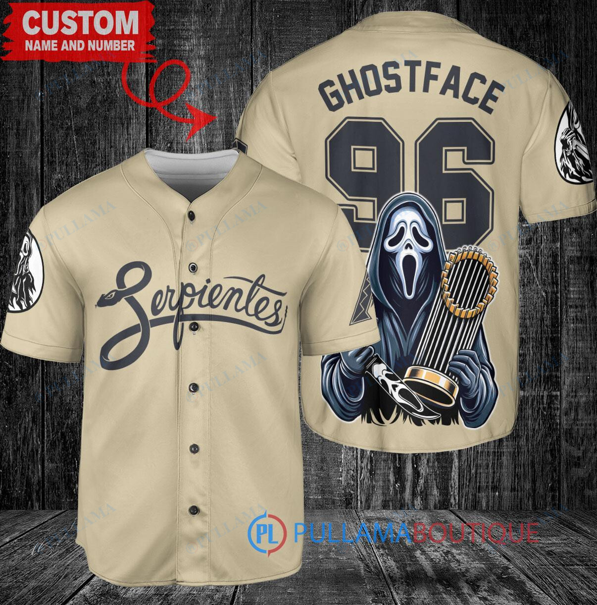 Arizona Diamondbacks x Ghostface Scream Halloween Halloween with World Series Trophy Custom Baseball Jersey Sand