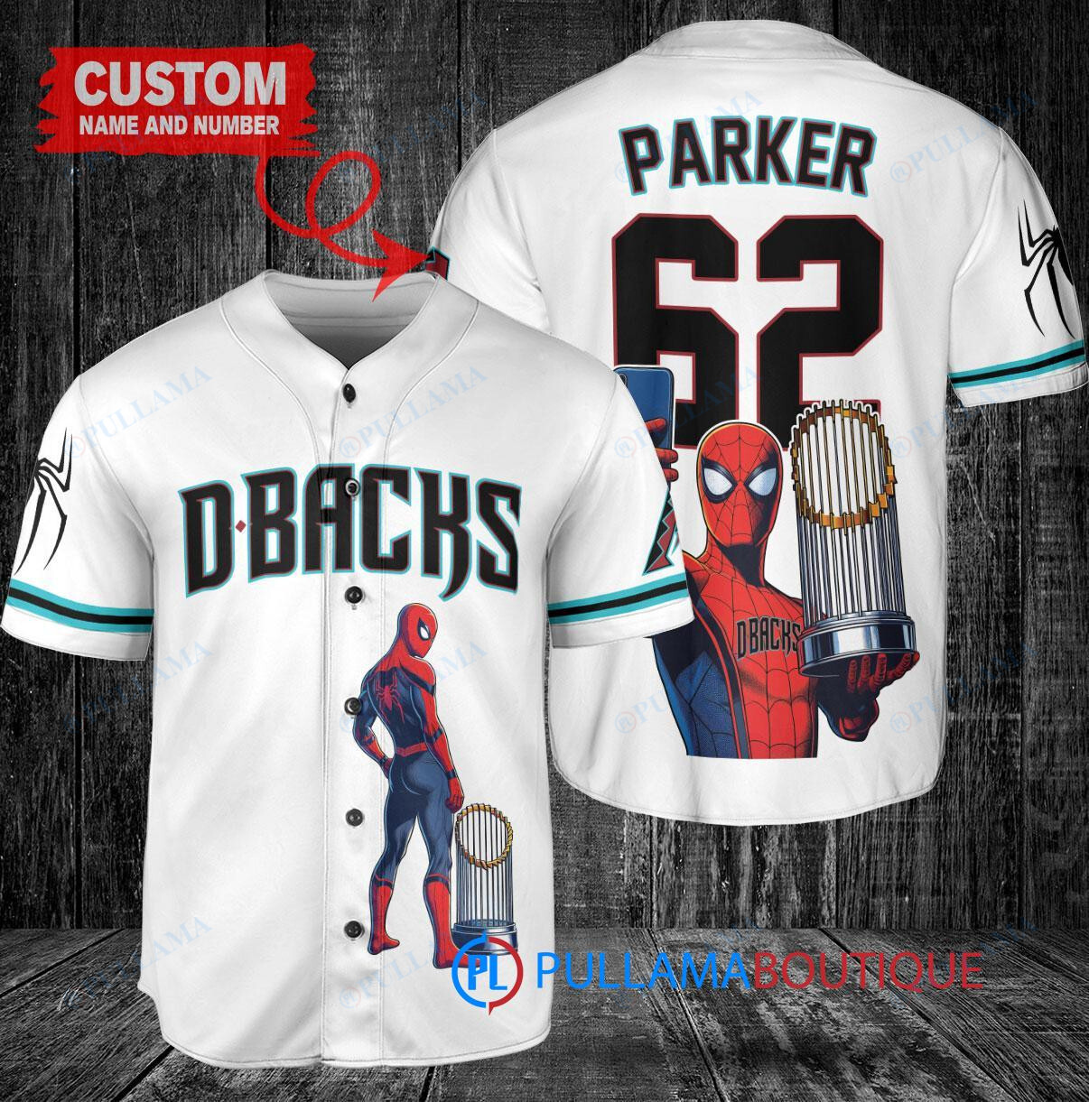Arizona Diamondbacks x Marvel Spiderman with Trophy Custom Baseball Jersey White