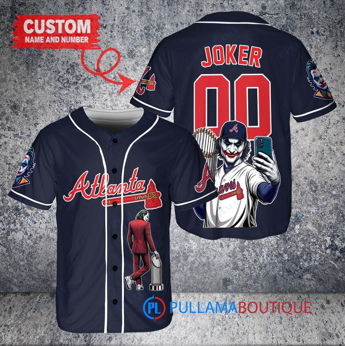 Atlanta Braves x Joker DC Comics with Trophy Custom Baseball Jersey Navy