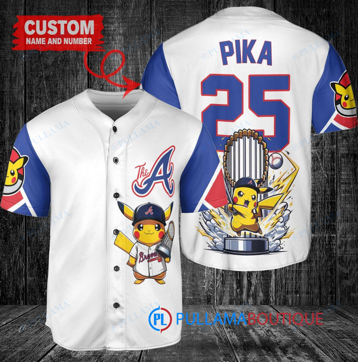 Show your love for the Atlanta Braves and Pokemon with this custom baseball jersey featuring Pikachu holding a trophy. This white City Connect jersey is perfect for any fan looking to stand out in the crowd. Made with high-quality materials, this jersey is comfortable to wear while showing off your unique style. Perfect for game days, events, or just hanging out with friends. Get yours today and catch all the compliments!