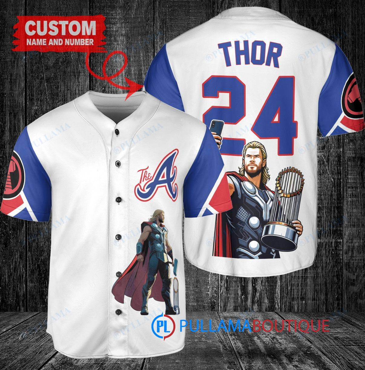 Show your support for the Atlanta Braves in a unique way with this custom baseball jersey featuring a collaboration with Thor from Marvel. The white City Connect design adds a modern twist to the classic jersey style. Perfect for any Braves fan looking to stand out from the crowd. Get yours today and hit a home run with your style!