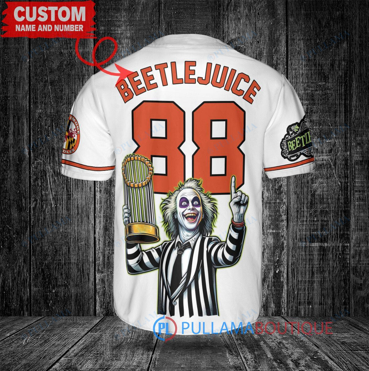 Baltimore Orioles Beetlejuice Halloween World Series Trophy Baseball Jersey White