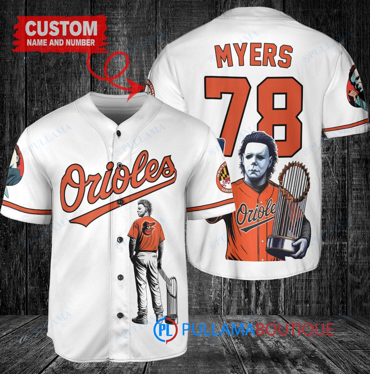 Baltimore Orioles x Halloween Michael Myers with Trophy Custom Baseball Jersey White
