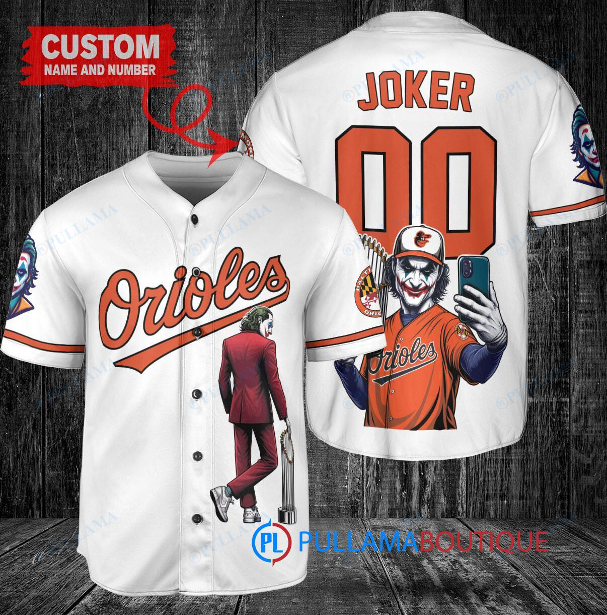 Show off your love for the Baltimore Orioles and the Joker from DC Comics with this custom baseball jersey. The white jersey features a unique design with the Joker holding a trophy, perfect for fans of both the team and the iconic comic book character. Made with high-quality materials, this jersey is a must-have for any baseball and comic book enthusiast. Stand out from the crowd and add this one-of-a-kind jersey to your collection today!