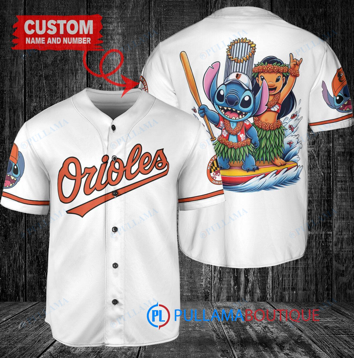 Baltimore Orioles x Lilo & Stitch with Trophy Baseball Jersey White