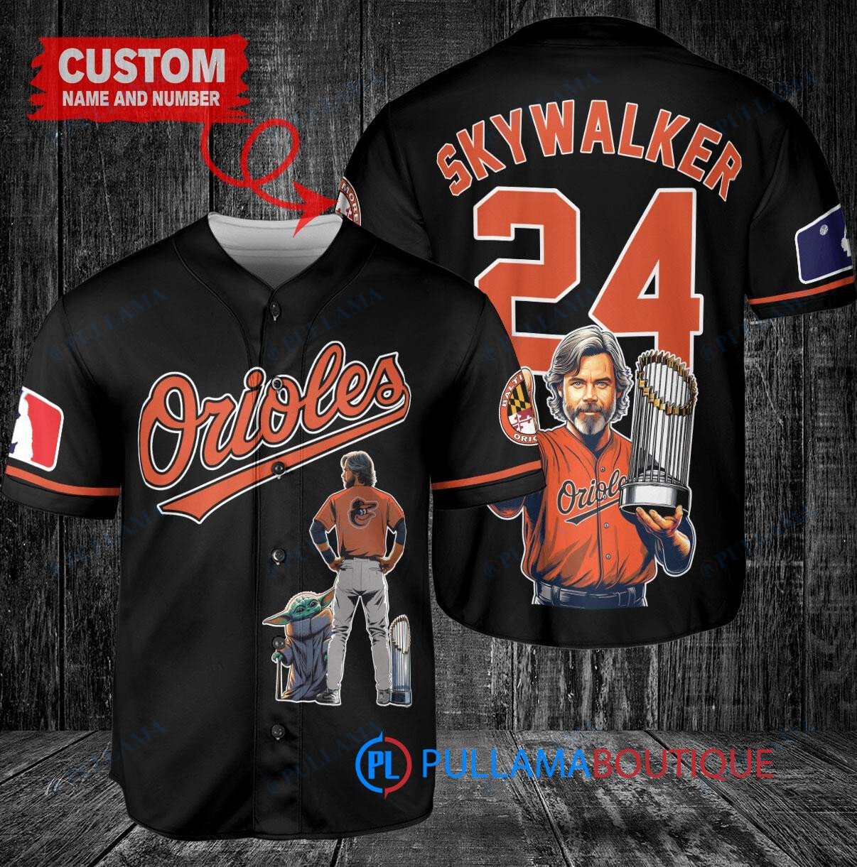 Show off your love for the Baltimore Orioles and Star Wars with this custom baseball jersey featuring Luke Skywalker. The black jersey is designed with a trophy graphic, perfect for any fan looking to stand out at the next game or event. Made with high-quality materials, this jersey is both stylish and comfortable. Get ready to represent your favorite team and galaxy far, far away in style!