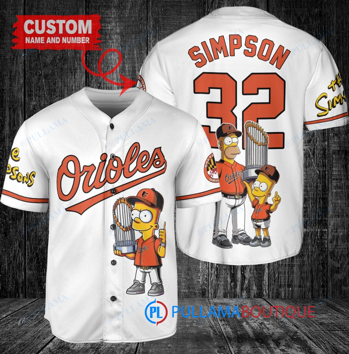 Show off your love for the Baltimore Orioles and The Simpsons with this custom baseball jersey featuring Bart Simpson, Homer Simpson, and Lisa Simpson holding a trophy. This white jersey is perfect for any fan looking to stand out in the crowd. Made with high-quality materials, this jersey is both stylish and comfortable, making it a great addition to any fan’s collection. Get yours today and hit a home run with your style!
