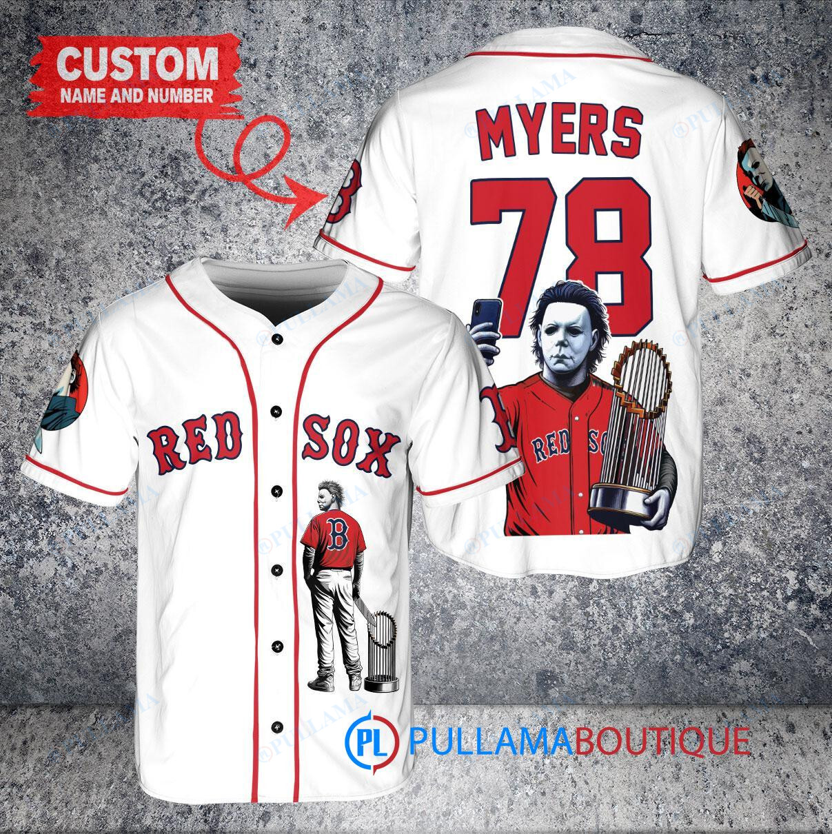 Boston Red Sox x Halloween Michael Myers with Trophy Custom Baseball Jersey White