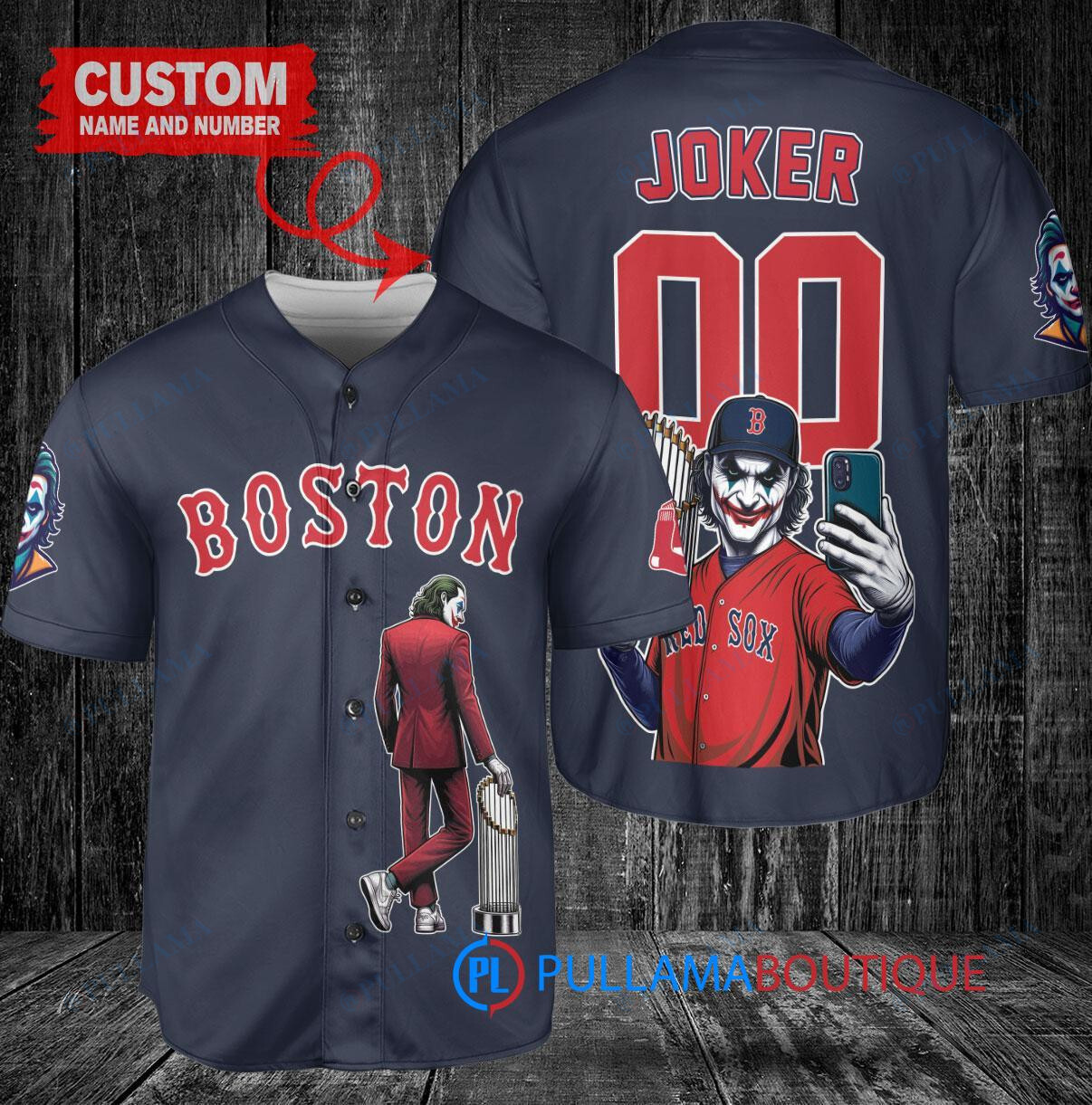 Boston Red Sox x Joker DC Comics with Trophy Custom Baseball Jersey Navy