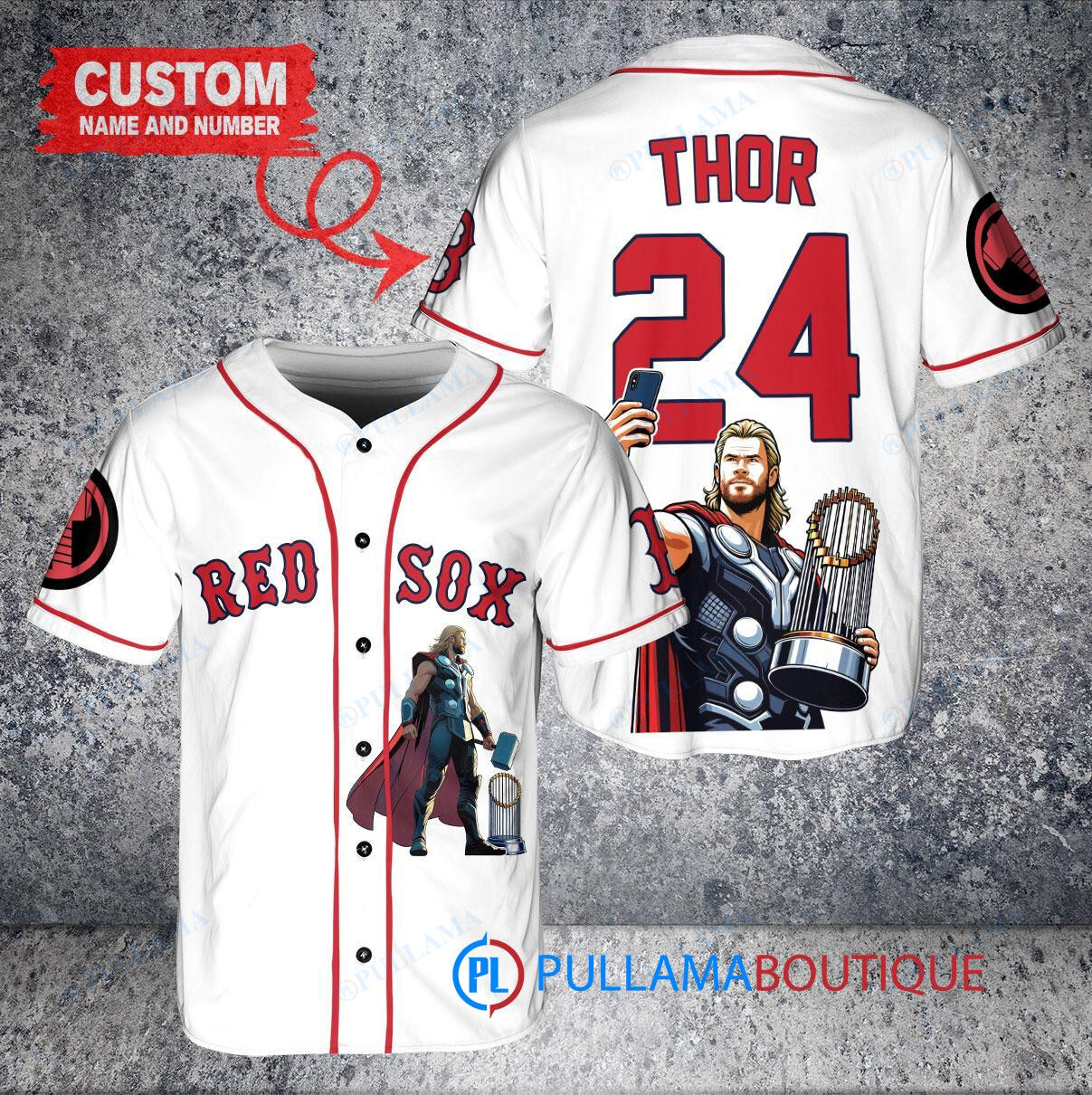 Boston Red Sox x Thor Marvel with Trophy Custom Baseball Jersey White