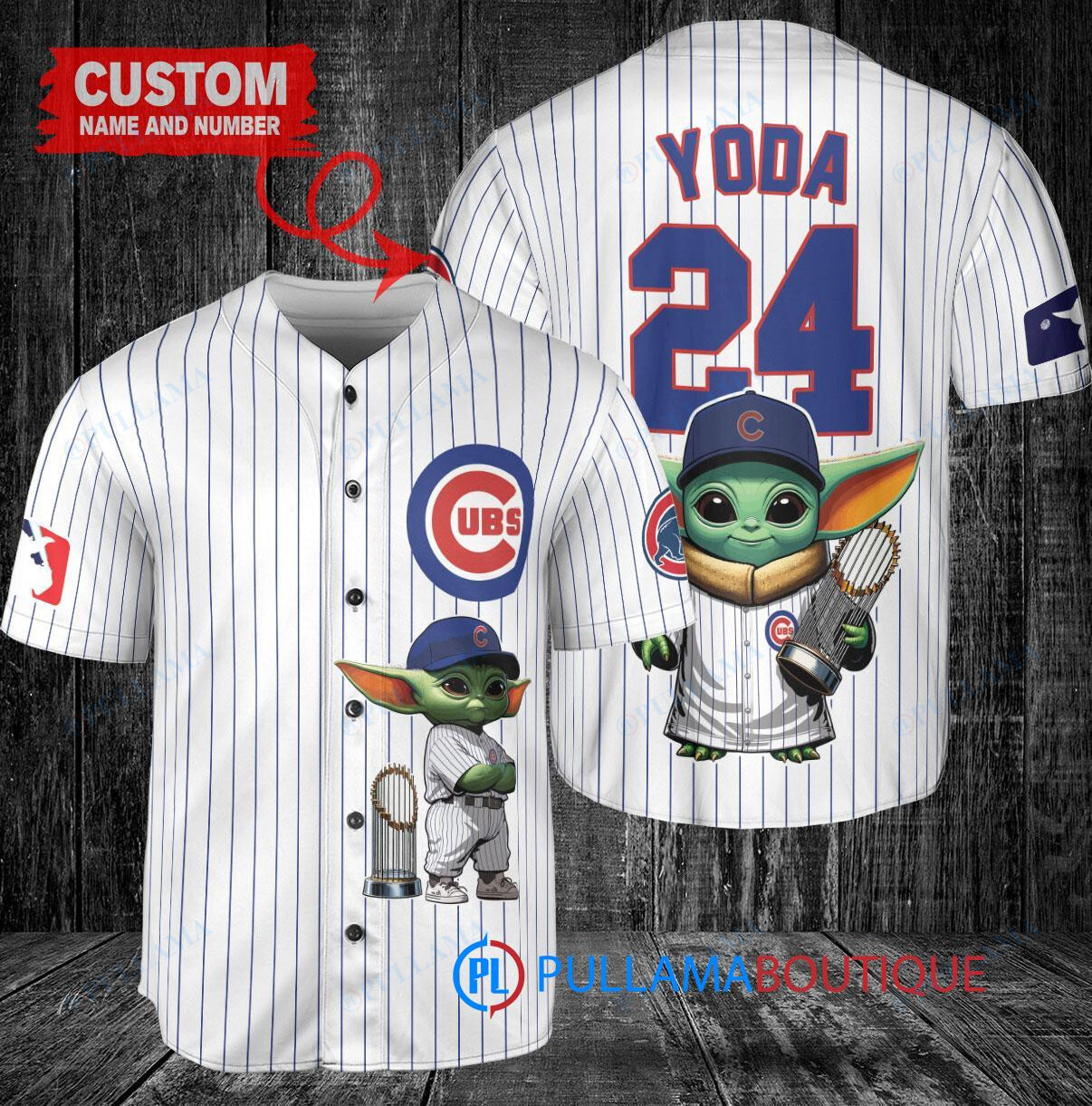 Chicago Cubs x Baby Yoda Star Wars The Mandalorian with Trophy Custom Baseball Jersey White