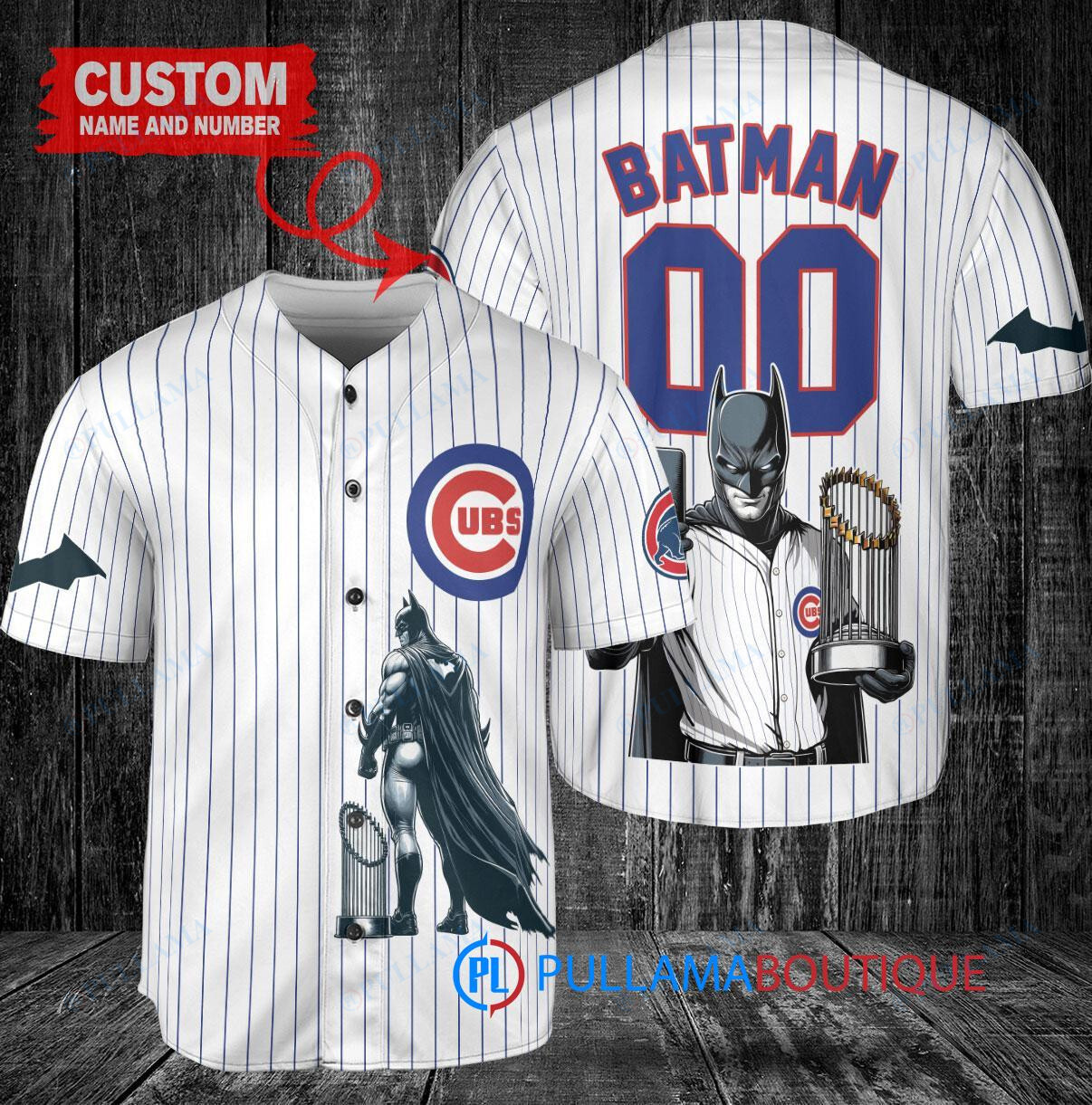 Chicago Cubs x DC Comics Batman The Dark Knight with Trophy Custom Baseball Jersey White