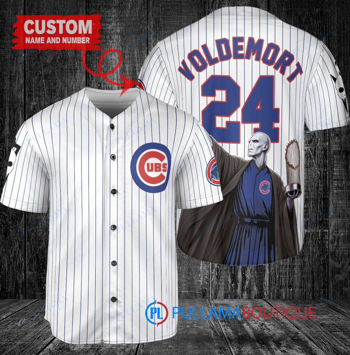 Chicago Cubs x Lord Voldemort Harry Potter with Trophy Custom Baseball Jersey White