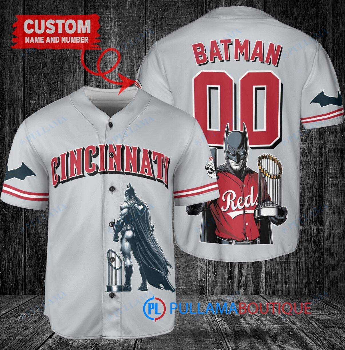 Cincinnati Reds x DC Comics Batman The Dark Knight with Trophy Custom Baseball Jersey Gray