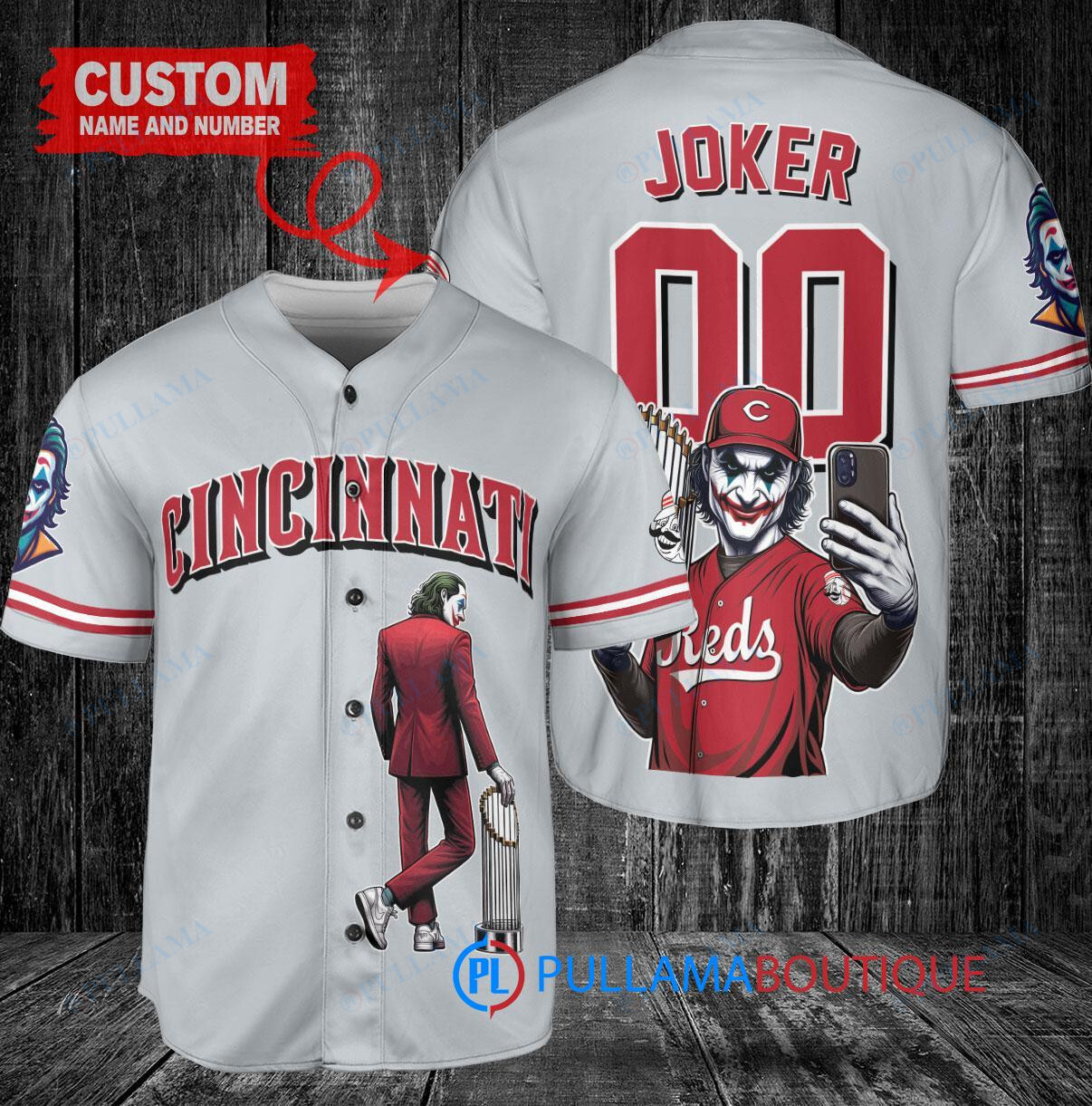 Cincinnati Reds x Joker DC Comics with Trophy Custom Baseball Jersey Gray