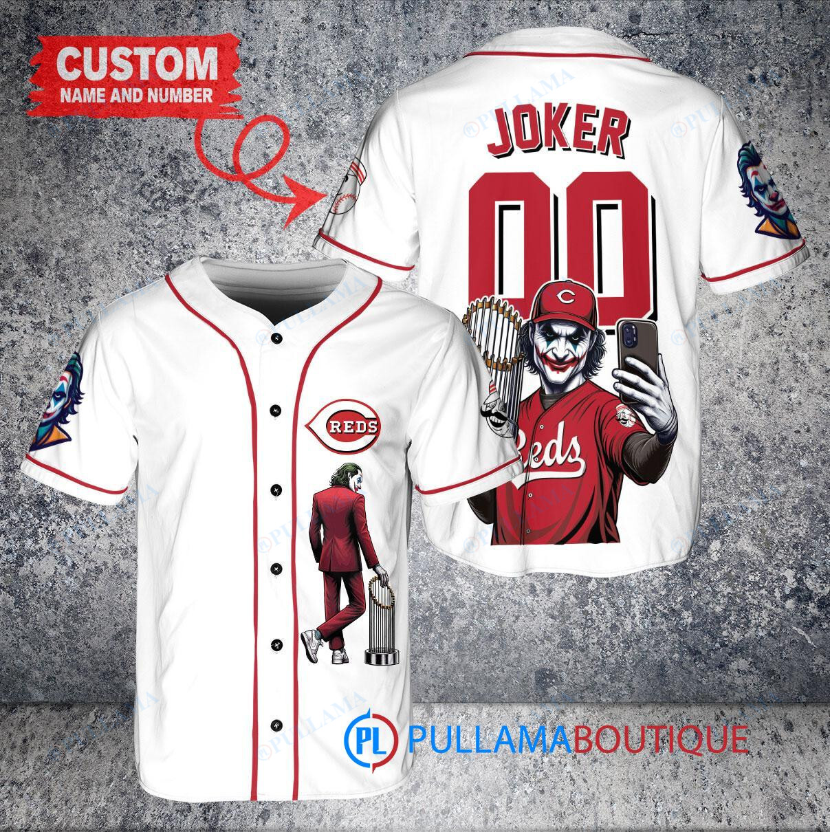 Cincinnati Reds x Joker DC Comics with Trophy Custom Baseball Jersey White