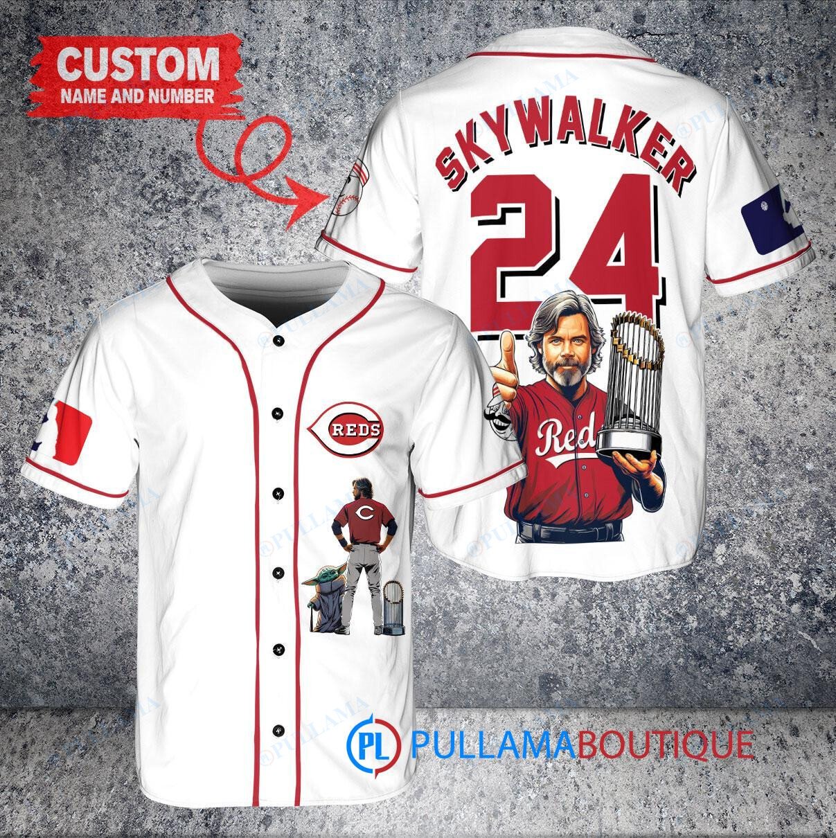 Cincinnati Reds x Luke Skywalker Star Wars with Trophy Custom Baseball Jersey White