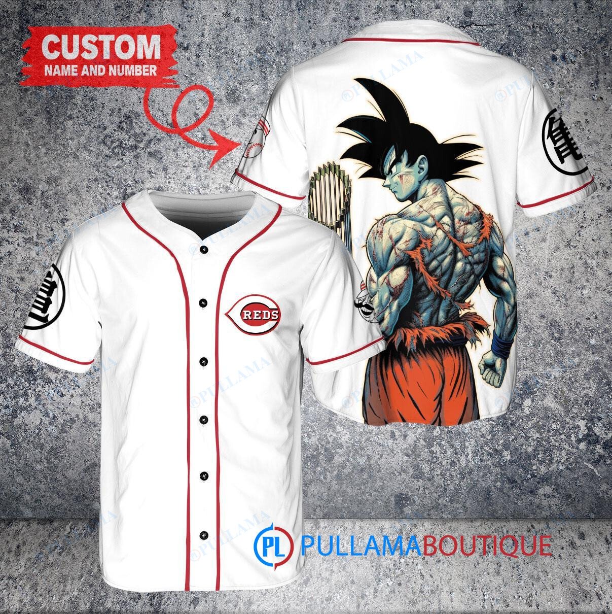 Cincinnati Reds x Son Goku Kakarot Super Saiyan Dragon Ball Z with Trophy Baseball Jersey White