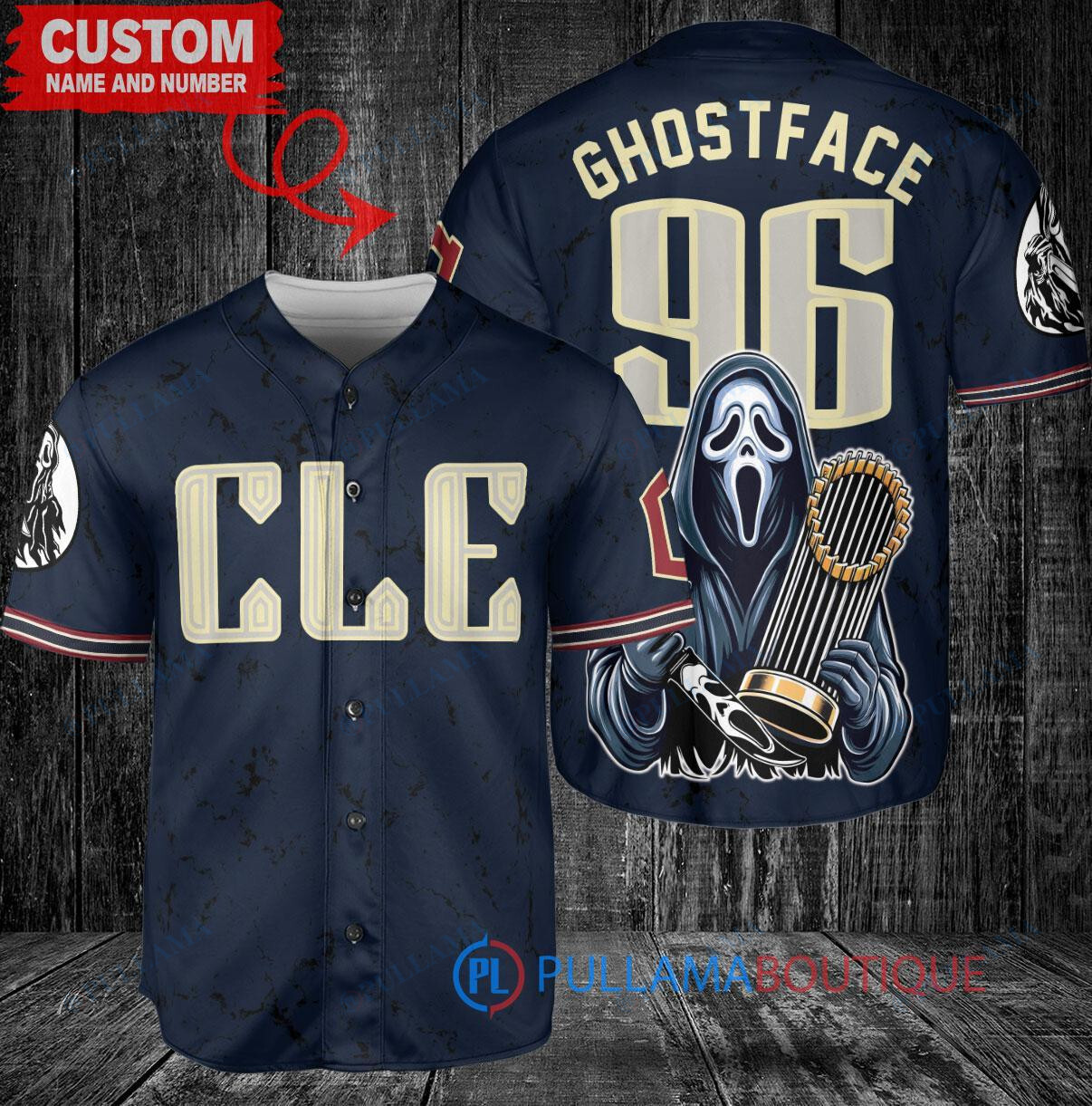 Cleveland Guardians x Ghostface Scream Halloween Halloween with World Series Trophy Custom Baseball Jersey Navy City Connect