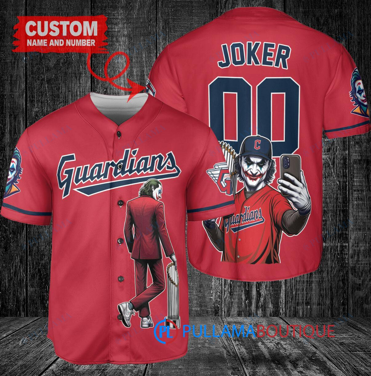 Cleveland Guardians x Joker DC Comics with Trophy Custom Baseball Jersey Red
