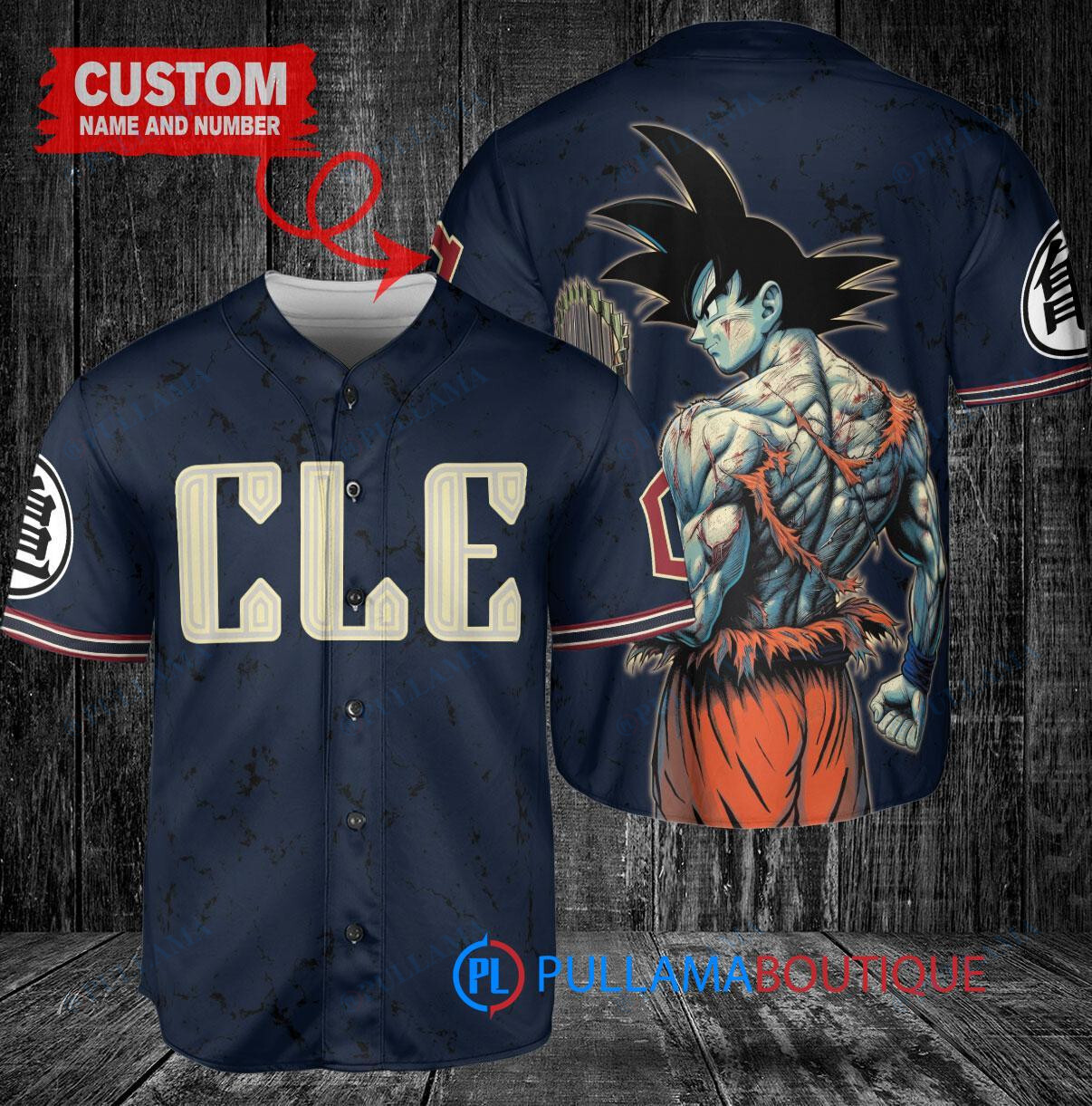 Cleveland Guardians x Son Goku Kakarot Super Saiyan Dragon Ball Z with Trophy Baseball Jersey Navy City Connect
