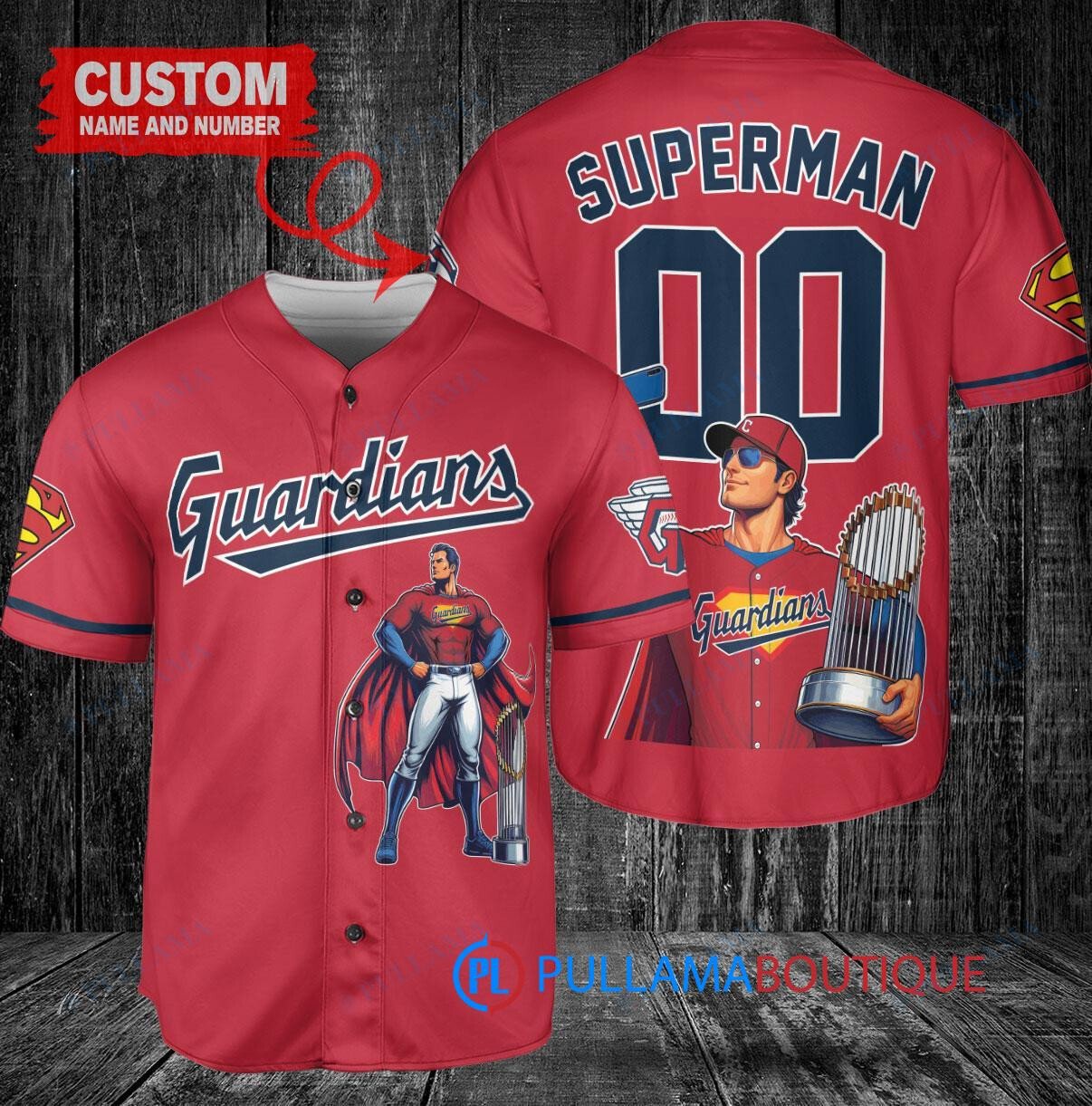 Cleveland Guardians x Superman DC Comics with Trophy Custom Baseball Jersey Red