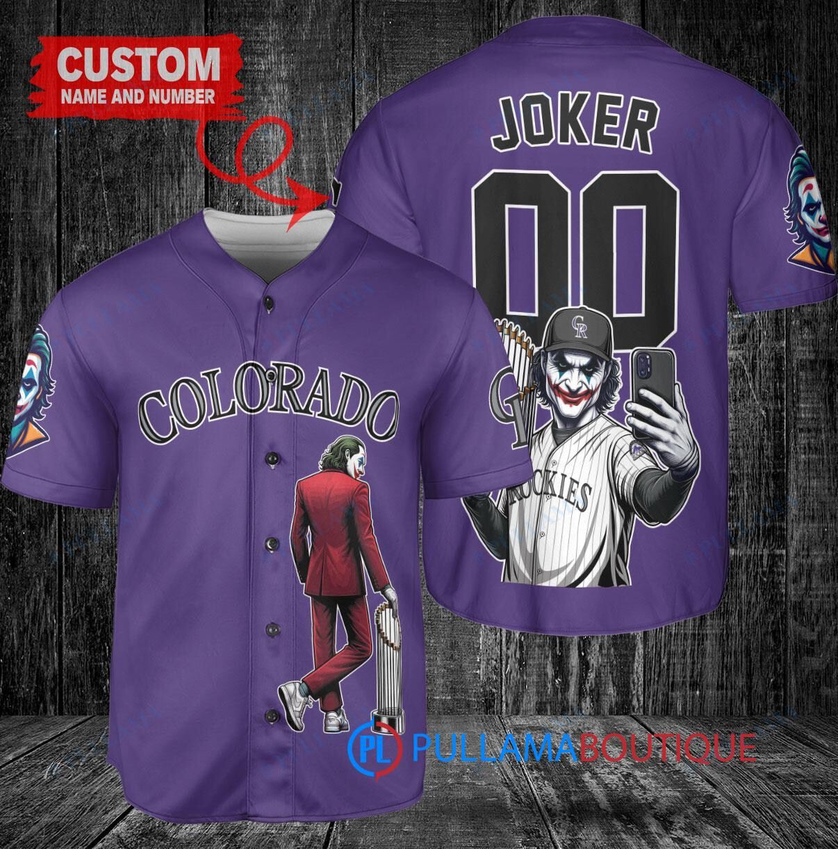 Colorado Rockies x Joker DC Comics with Trophy Custom Baseball Jersey Purple