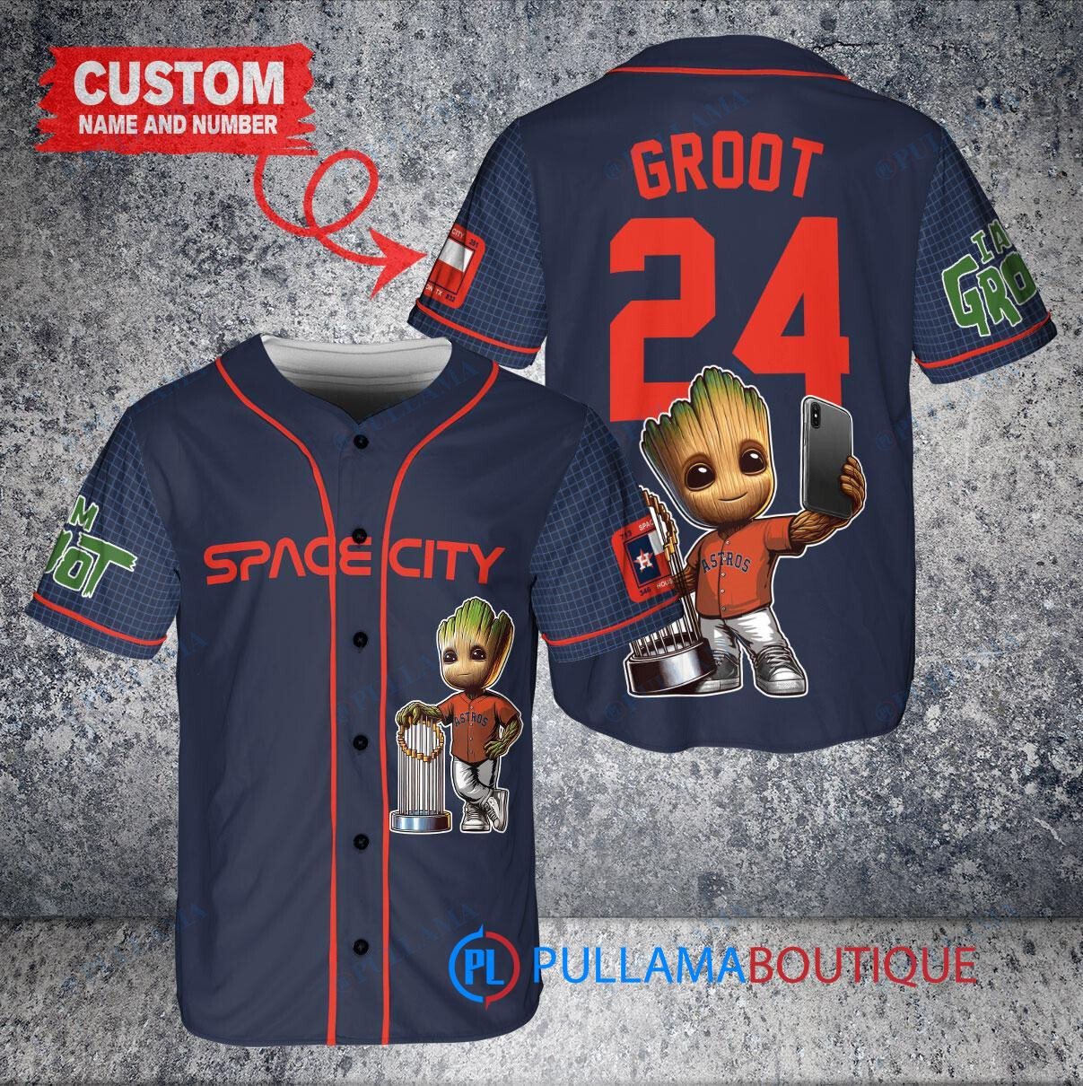Houston Astros x Baby Groot Marvel Guardians Of The Galaxy with Trophy Custom Baseball Jersey Navy City Connect