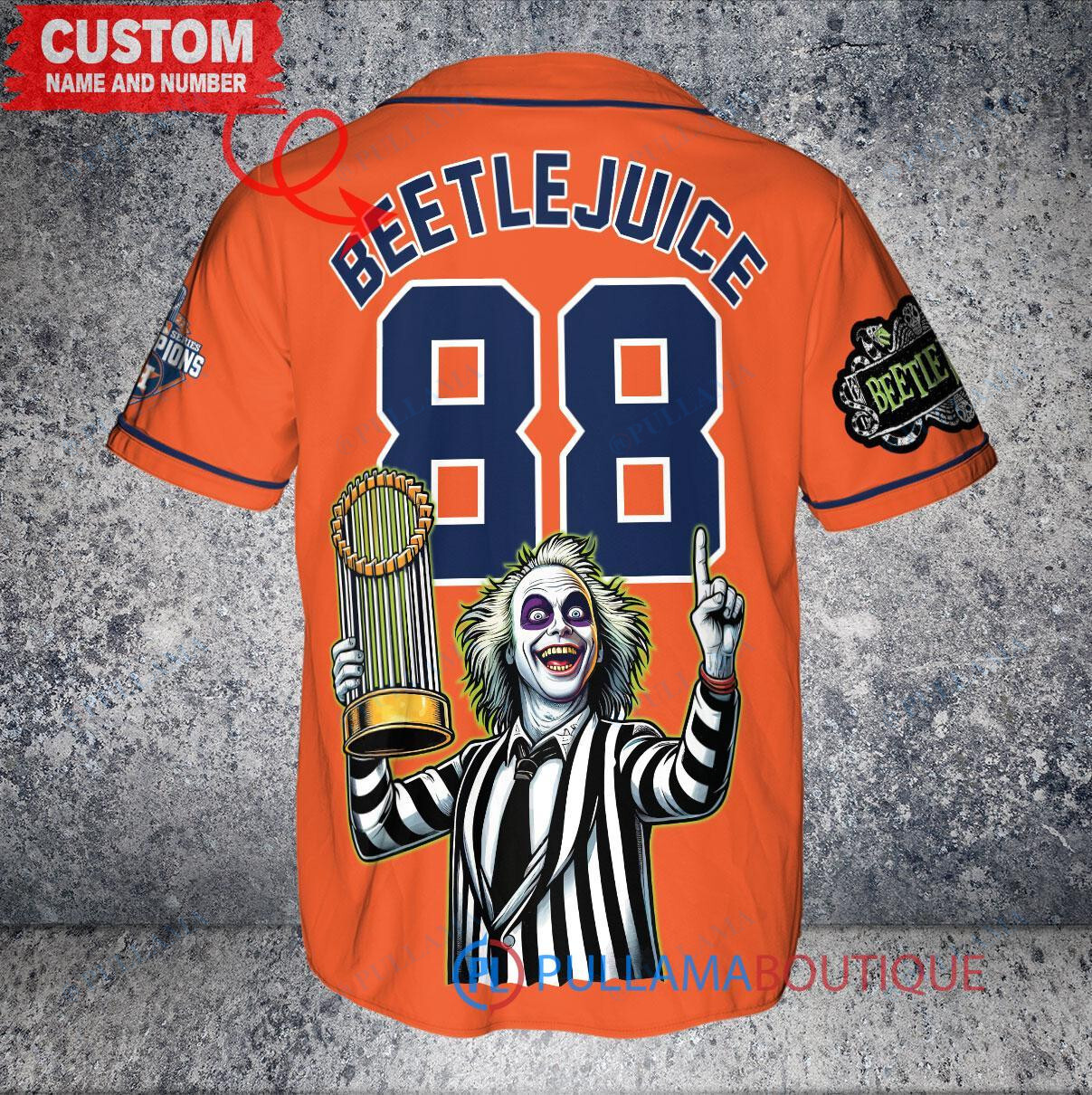Houston Astros x Beetlejuice Halloween with World Series Trophy Custom Baseball Jersey Orange