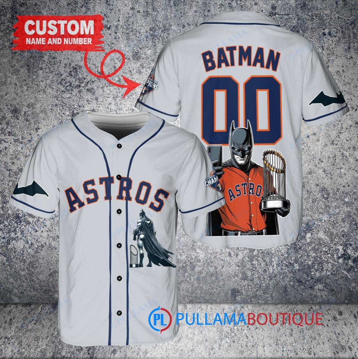 Houston Astros x DC Comics Batman The Dark Knight with Trophy Custom Baseball Jersey Gray