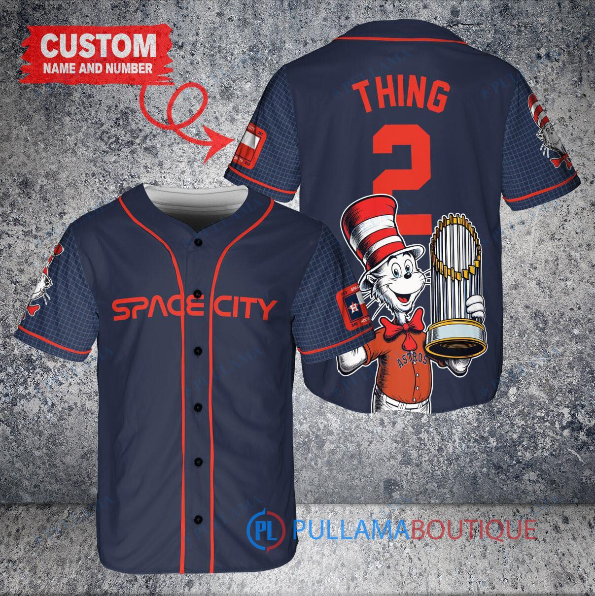 Houston Astros x Dr Seuss with World Series Trophy Custom Baseball Jersey Navy City Connect