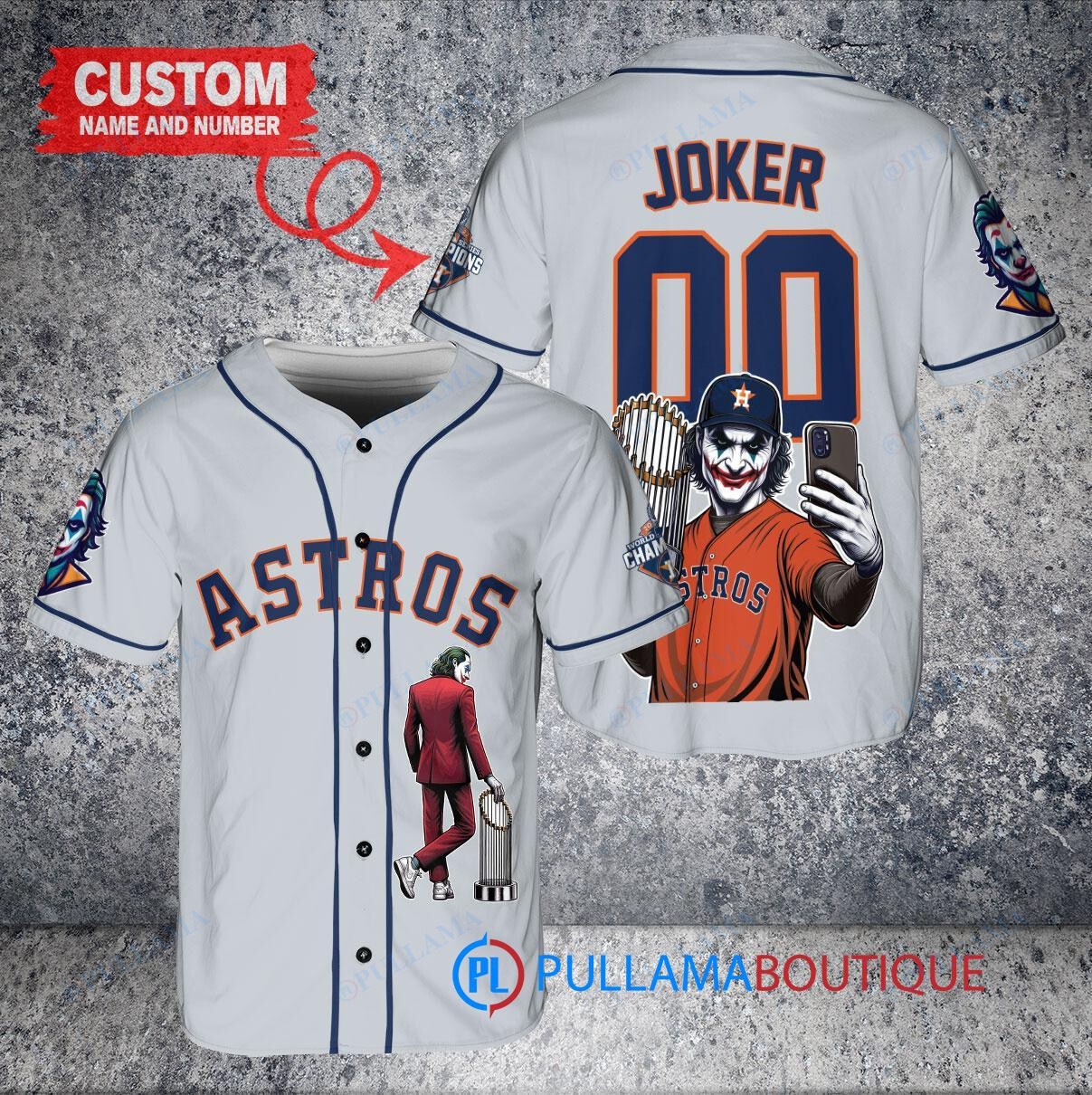 Houston Astros x Joker DC Comics with Trophy Custom Baseball Jersey Gray