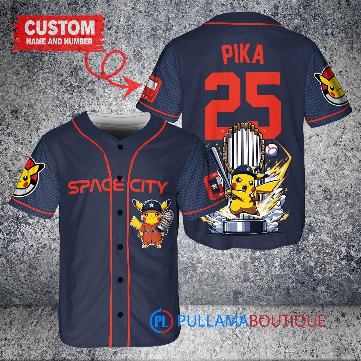 Houston Astros x Pikachu Pokemon with Trophy Custom Baseball Jersey Navy City Connect