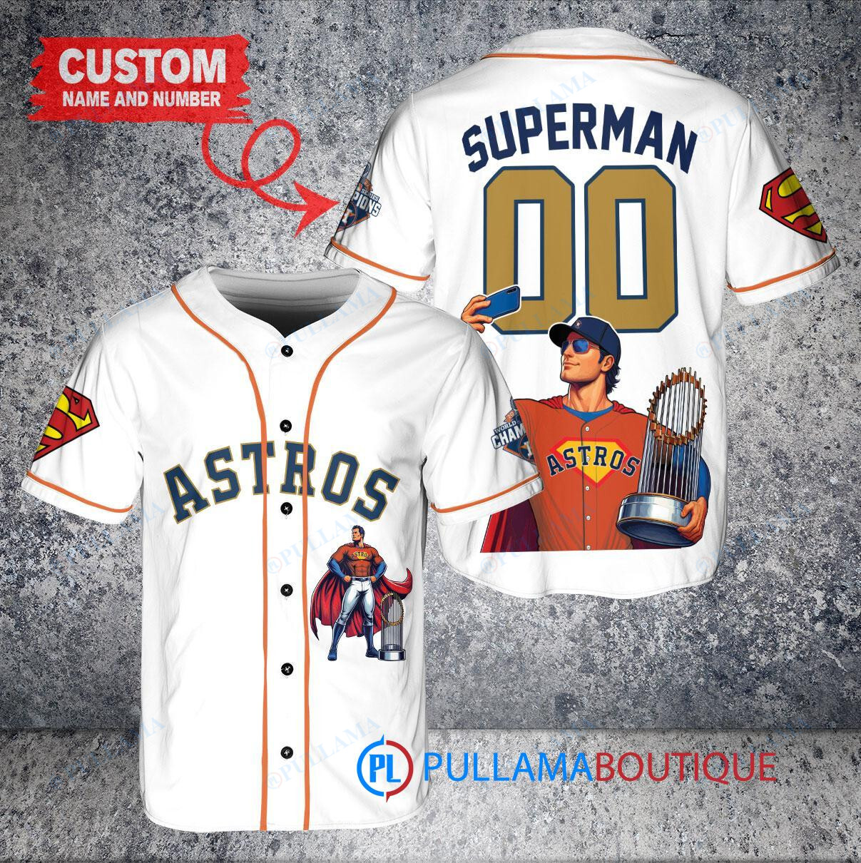 Houston Astros x Superman DC Comics with Trophy Custom Baseball Jersey White