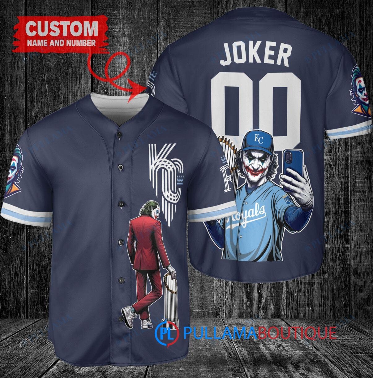 Kansas City Royals x Joker DC Comics with Trophy Custom Baseball Jersey Navy
