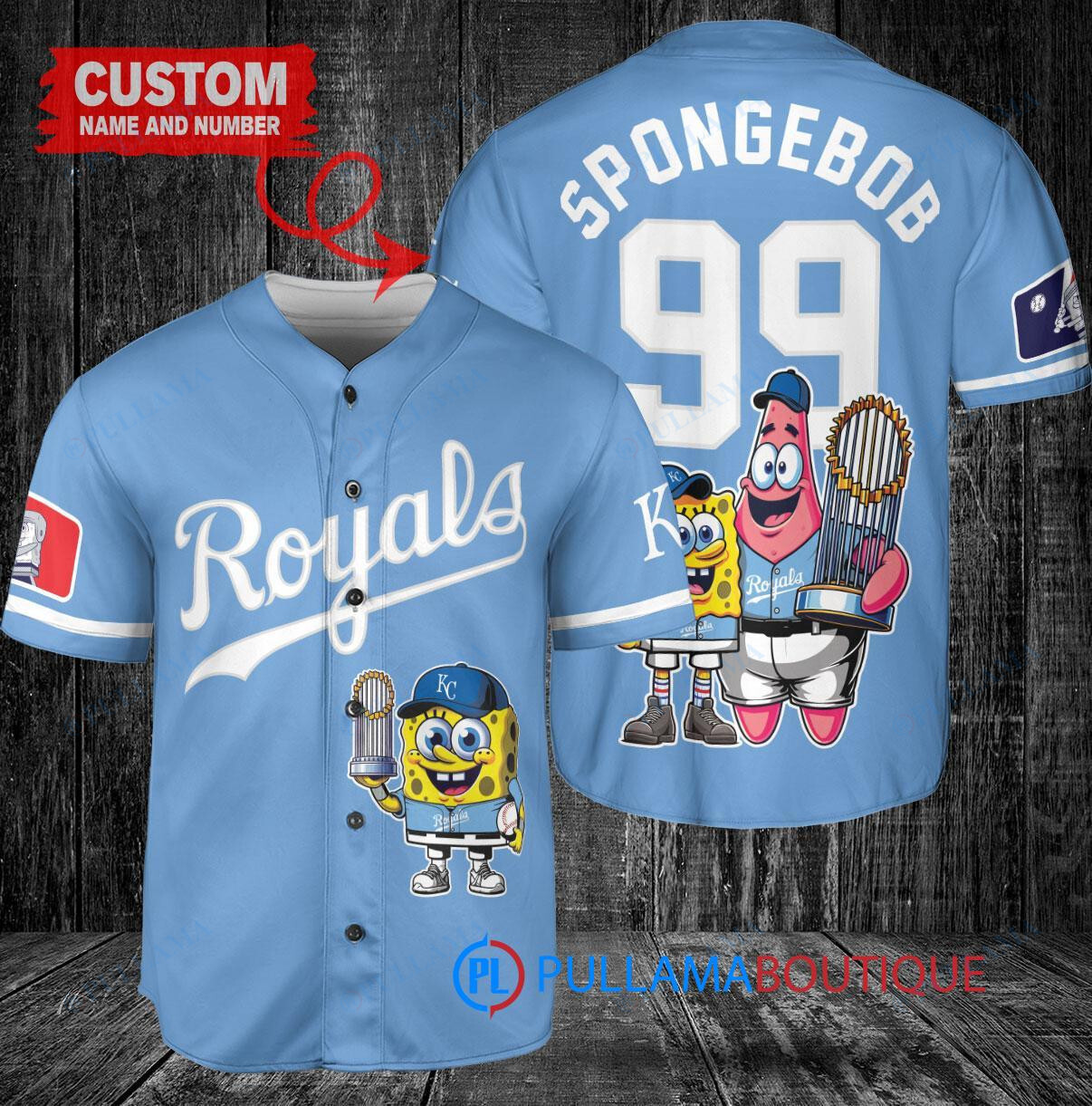 Kansas City Royals x SpongeBob SquarePants with Trophy Custom Baseball Jersey Light Blue