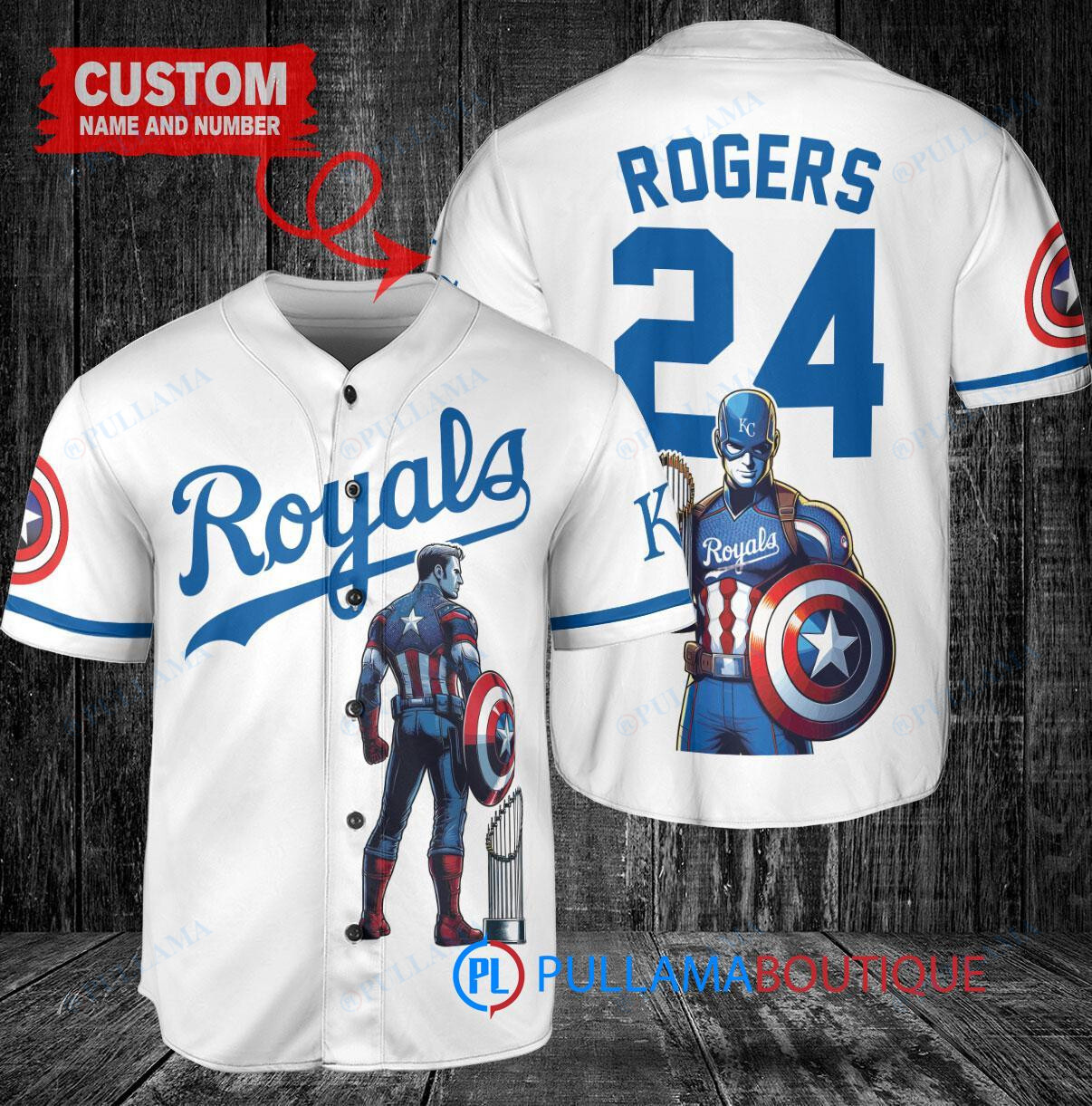 KC Royals x Marvel Captain America Steve Rogers Baseball Jersey – White