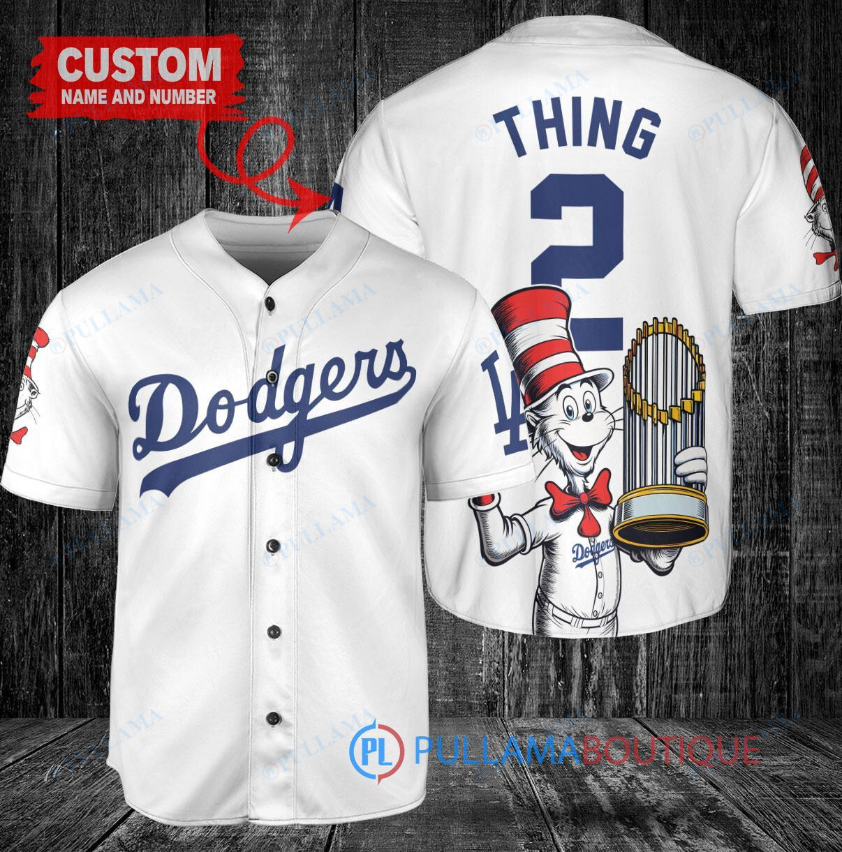 Los Angeles Dodgers x Dr Seuss with World Series Trophy Custom Baseball Jersey White