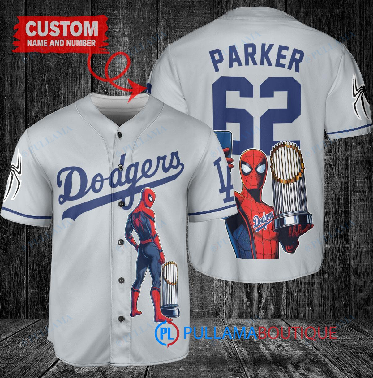 Los Angeles Dodgers x Marvel Spiderman with Trophy Custom Baseball Jersey Gray