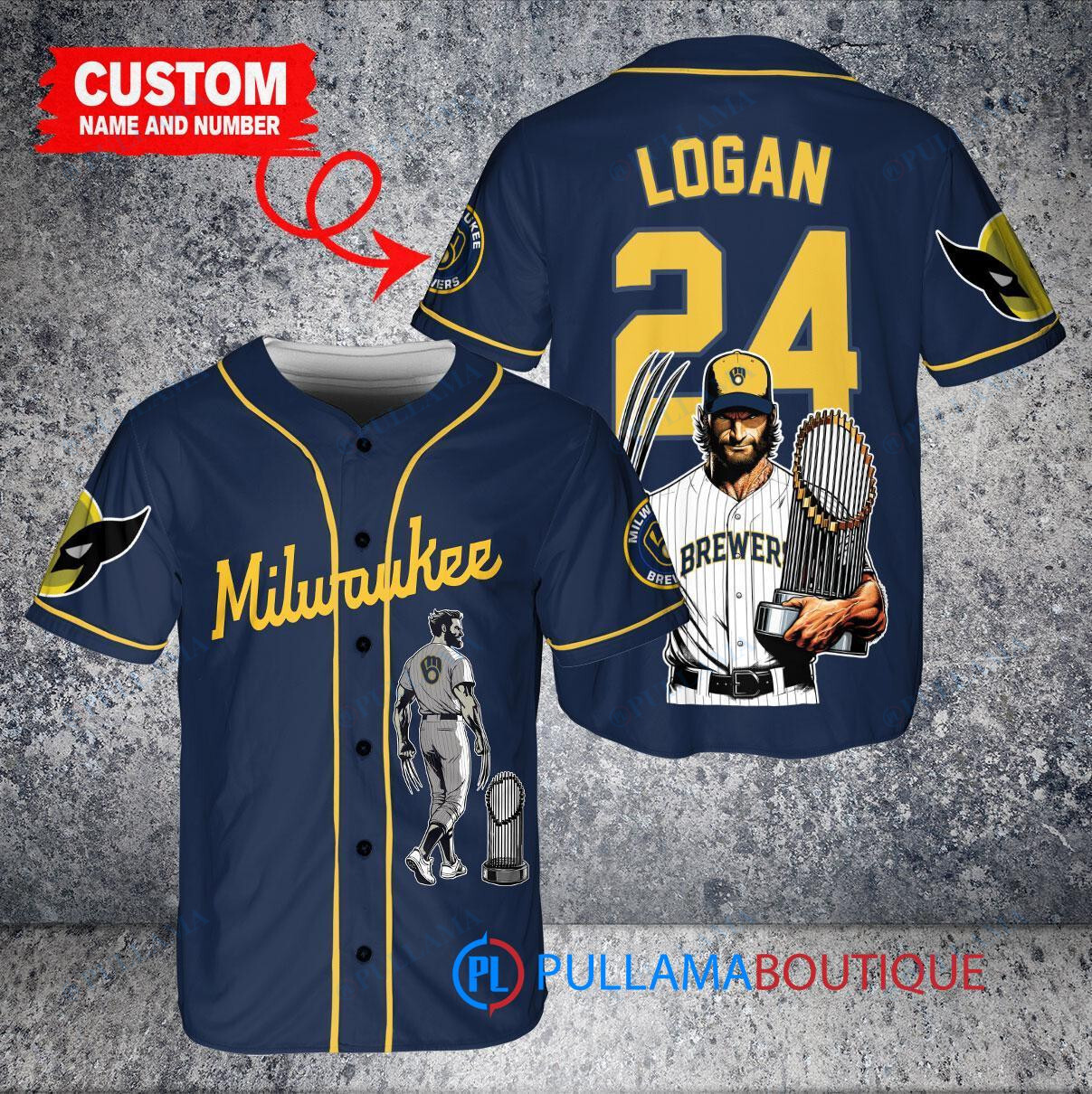 Milwaukee Brewers x Wolverine Logan with Trophy Custom Baseball Jersey Navy