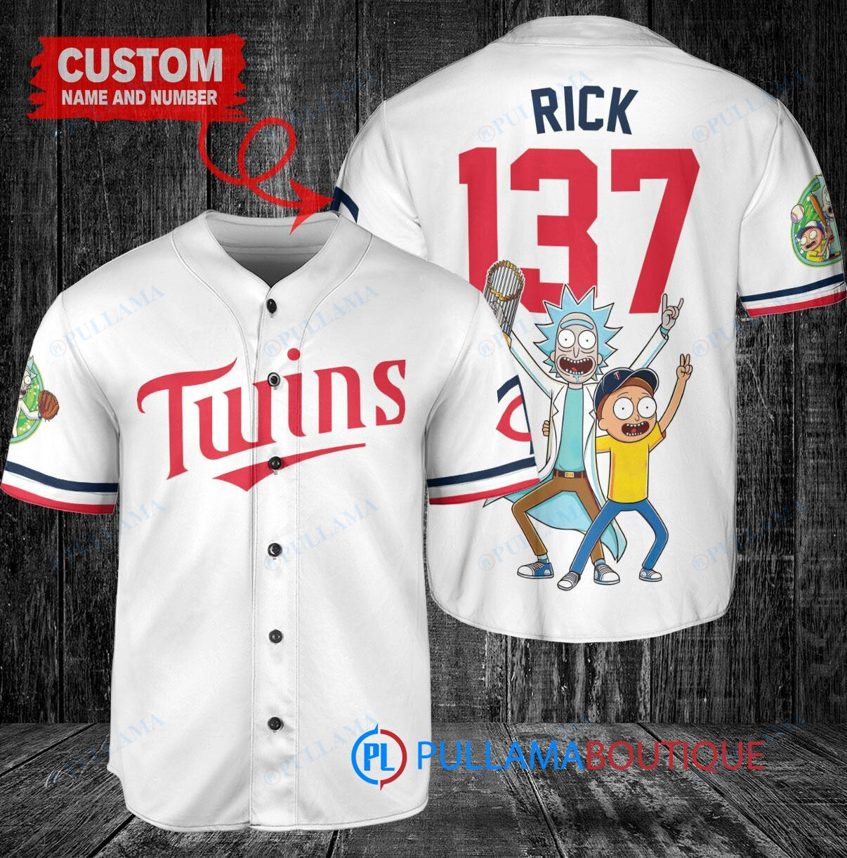 Show off your love for the Minnesota Twins and Rick and Morty with this custom baseball jersey in white. Featuring a unique design with the iconic characters and a trophy graphic, this jersey is perfect for any fan. Made with high-quality materials, this jersey is comfortable to wear while cheering on your favorite team. Perfect for game days or casual wear, this jersey is a must-have for any die-hard fan.