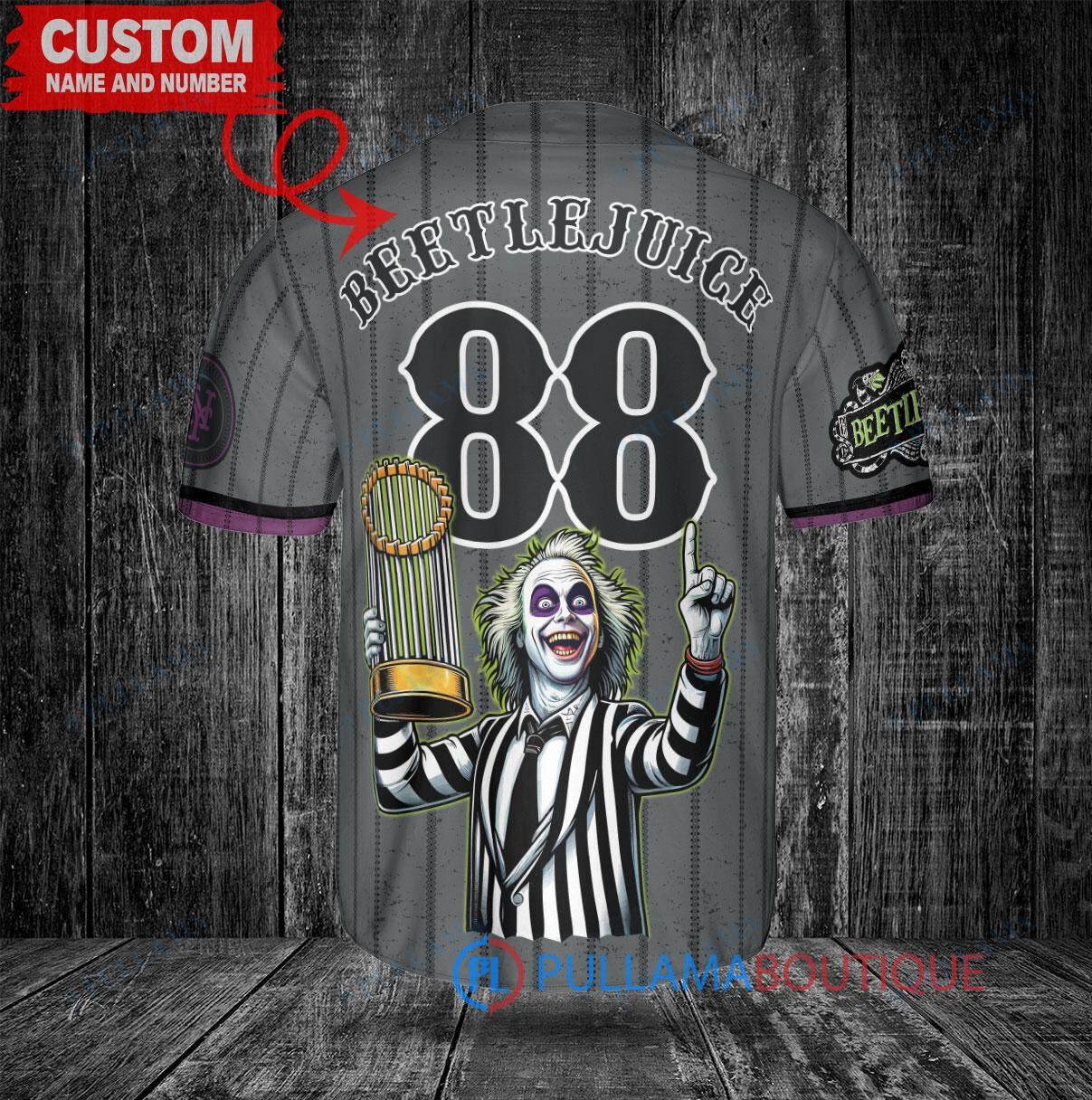 New York Mets x Beetlejuice Halloween with World Series Trophy Custom Baseball Jersey Graphite City Connect