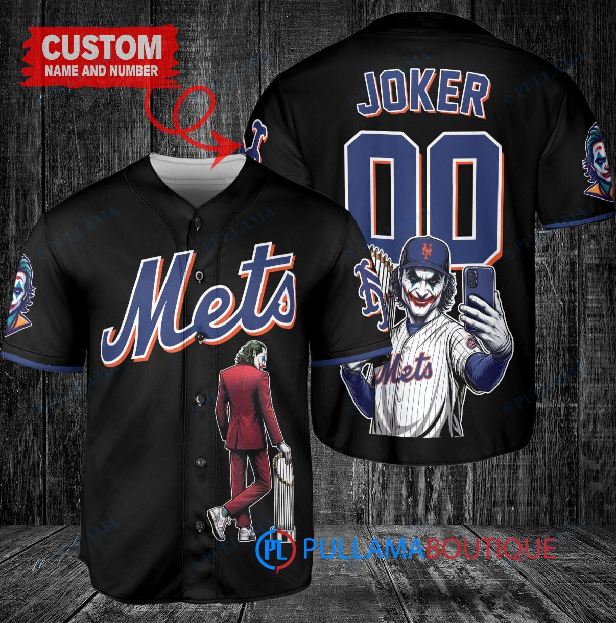Show off your love for the New York Mets and the Joker from DC Comics with this custom baseball jersey. The black jersey features a unique design combining elements from both the Mets and the Joker, making it a must-have for any fan. The jersey also includes a trophy graphic, adding an extra touch of style. Perfect for wearing to games or just showing off your fandom, this jersey is sure to turn heads.