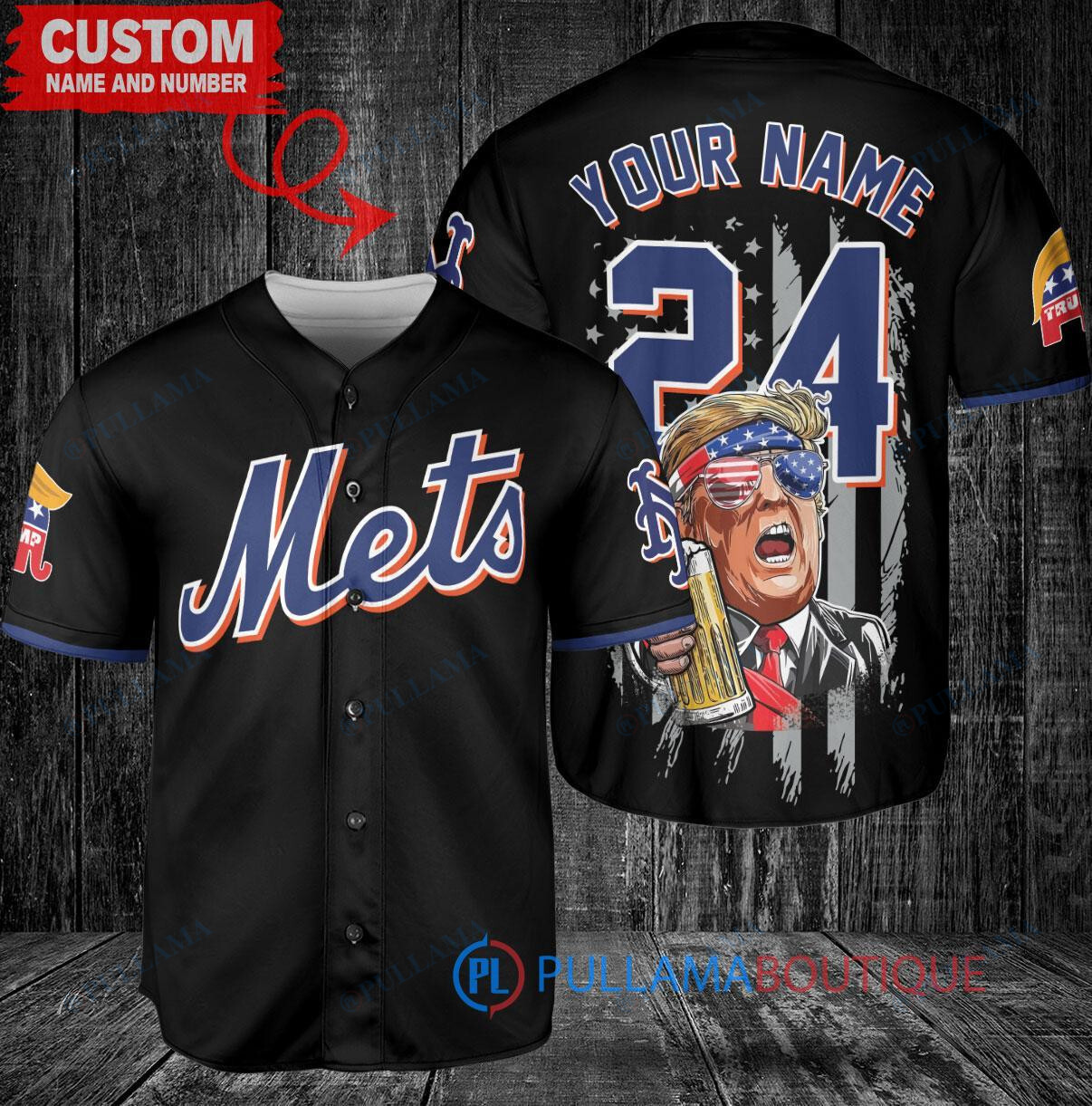 New York Mets x Limited Edition with World Series Trophy Custom Baseball Jersey Black