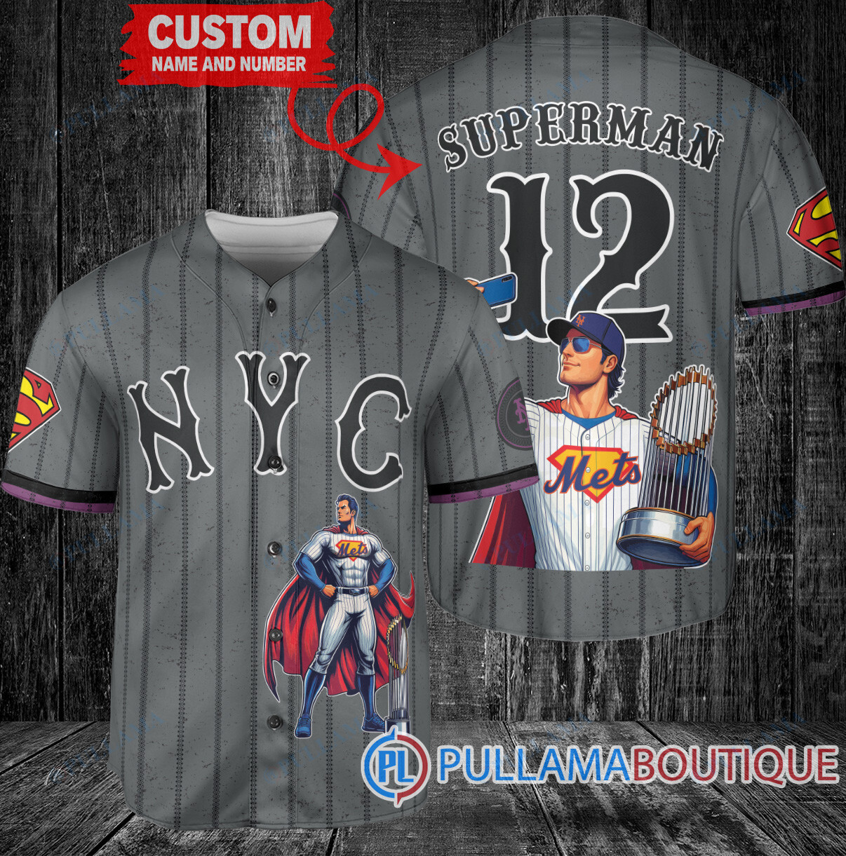 Show off your love for the New York Mets and Superman with this custom baseball jersey featuring a unique Graphite City Connect design. This jersey is perfect for any fan looking to stand out from the crowd. Made with high-quality materials, this jersey is comfortable to wear while cheering on your favorite team. Get your hands on this limited edition jersey and add it to your collection today!