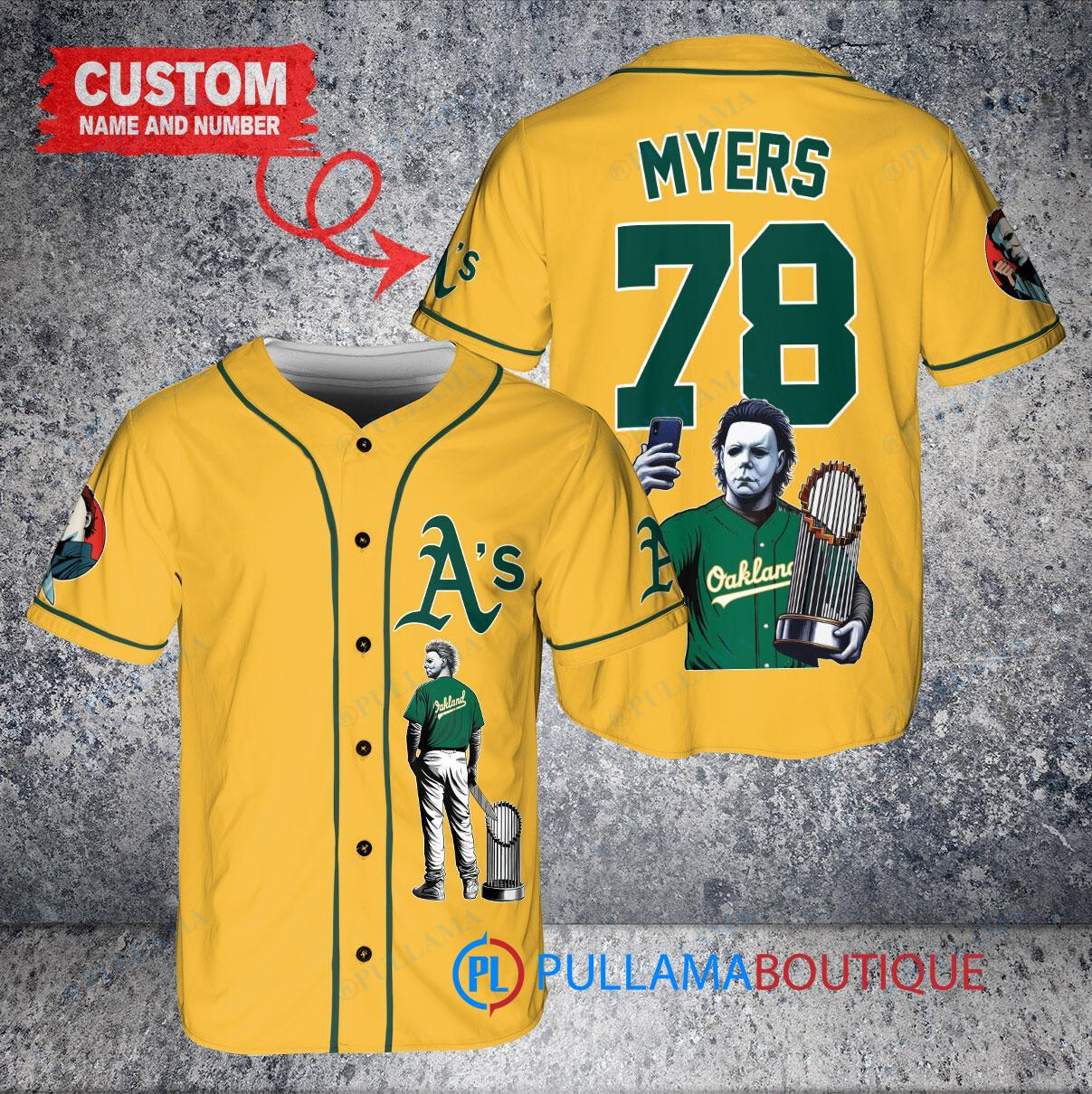 Oakland Athletics x Halloween Michael Myers with Trophy Custom Baseball Jersey Gold
