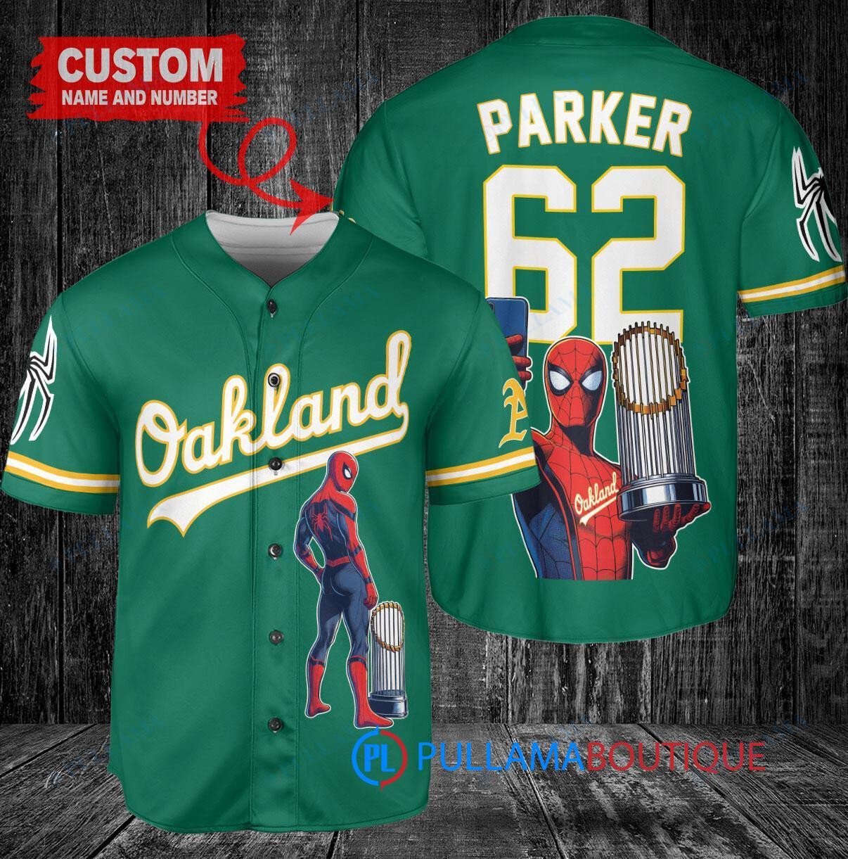 Show off your Oakland Athletics pride with this custom baseball jersey featuring a unique Marvel Spiderman design. The green jersey is perfect for any fan looking to stand out in the crowd. Made with high-quality materials, this jersey is comfortable to wear while cheering on your favorite team. Get your hands on this trophy-worthy jersey today and swing into action like Spiderman on the baseball field!